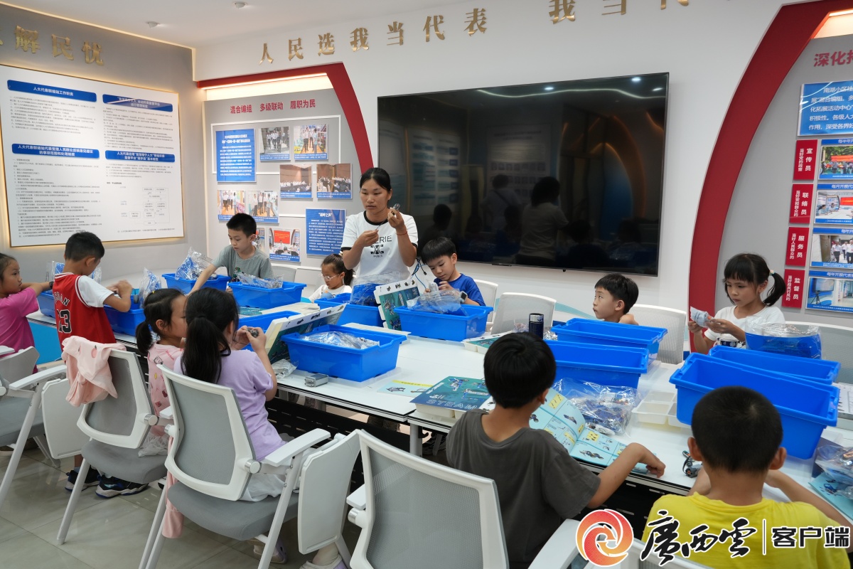 南宁市青少年活动中心南湖教学点开班仪式。 当晚,南宁市“家门口青少年宫”南湖社区教学点少儿声乐入门班、“AI智能机器人初级班(新生班)”及“我要变美”美妆课同步开课。“AI智能机器人初级班”教室内,孩子们在专业老师指导下,专注地组装零件、编写简易程序,探索人工智能的奥秘,从小培养科学精神和创新思维;“我要变美”美妆课满足了青年群体对实用生活技能的需求,青年学员们学习基础护肤、日常妆容技巧,提升生活美学素养和自我形象管理能力;少儿声乐入门班则为孩子们提供专业的艺术启蒙。这个暑期,南湖社区教学点开设围棋、书法、舞蹈、写作、声乐、口语等11门课程,吸引了近百名社区居民报名参加,为丰富社区未成年人、青年的精神文化生活,让他们在形式多样、寓教于乐的课程体验和活动中培养兴趣、提升素养、开阔视野、全面发展起到了积极的推动作用。