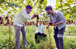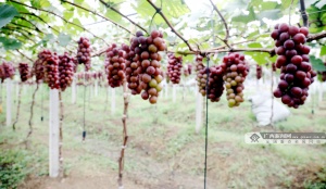 盛夏七月,贺州市平桂区公会镇解元村乡村振兴实践区的连片葡萄大棚内生机盎然。青翠欲滴、嫣红透亮、深紫如宝石般的各色葡萄挂满藤蔓,颗颗晶莹饱满,在阳光下散发着诱人的果香。图为外国留学生在葡萄园研学。林瑞 叶子 摄(广西云-广西日报)