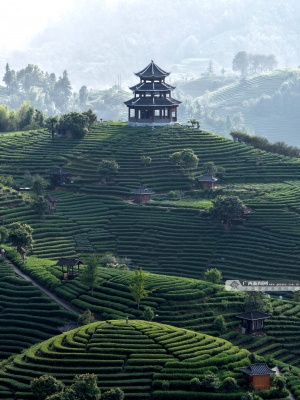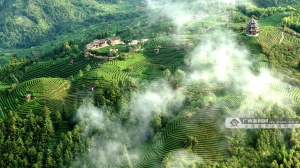 7月13日,夏雨初歇,在柳州市三江侗族自治县八江镇布央村,仙人山茶园宛如被打翻的调色盘,云雾似轻纱漫过茶垄,光影在叶尖跳跃,廊亭错落成诗,采茶人影流动成韵,勾勒出一幅幅迷人的诗意画卷。图为云雾似轻纱漫过茶垄。龚普康 摄(广西云-广西日报)