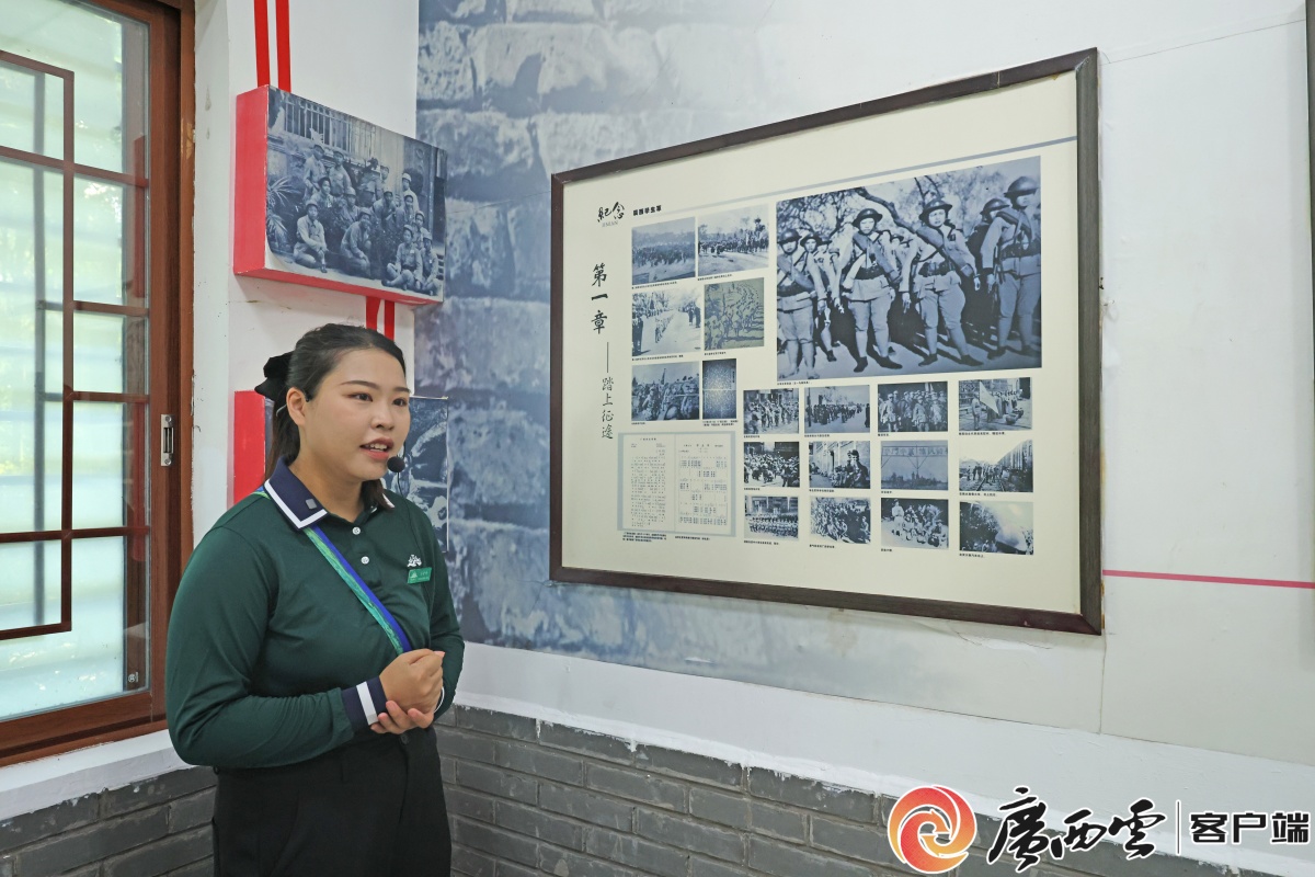 28岁讲解员唱起88年前的《广西学生军军歌》。 “我们是广西青年学生军,我们是铁打的一群,在伟大的时代里负起伟大的使命……”7月15日上午,在广西学生军抗日史料陈列室内,28岁的讲解员冯金金向广西云-广西日报特别报道组唱起这首创作于1937年的《广西学生军军歌》。清亮的歌声回荡在展室中,将报道组带回那段战火纷飞的岁月。