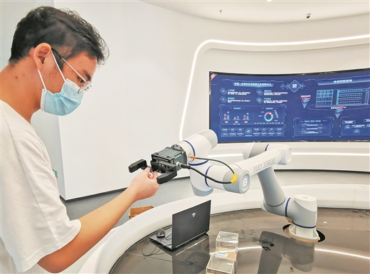 中国—东盟数字经济产业园国际交流中心内,工作人员正在调试机械臂。(资料图) 数据显示,截至2024年末,广西人工智能相关企业超过2500家。今年一季度,人工智能硬件产品产值171亿多元,软件产品营收17亿多元。 集成改革“向快”: 从物理破壁到规则共通 如果说人工智能产业的崛起是广西科技领域改革的亮眼成果,那么集成改革在交通、口岸等领域的突破,则为广西发展搭建起更高效的“快车道”。 7月7日下午3时,本是南宁吴圩国际机场海关服务大厅的业务高峰时段,现场却不见办事人群的身影。 “现在通过南宁机场智慧航空物流综合服务平台,货主坐在家里就能办理业务,还能实时追踪货运全过程。”南宁吴圩机场海关查验科副科长龙浩宁“解密”。 2023年,南宁海关与广西机场集团联合组建联合指挥调度中心,打造“邕之翼”智慧物流平台,实现业务办理线上化、无纸化,曾经人来人往的业务报关大厅由此“降温”。 在调度中心滚动的大屏上,一票从南宁飞往菲律宾克拉克的货运业务显示:货物入库称重完成80%,节点截止时间为当晚9时25分。“一旦超时系统会自动报警。”龙浩宁介绍,如今每个业务环节的时间被优化,以跨境电商为例,广西与东盟国家的网购包裹可实现72小时送达。 高效便捷带来了物流量的爆炸式增长,南宁吴圩机场海关今年监管量预计突破1亿清单。 智慧空港的关键跨越,在于打通了数据壁垒——将海关、机场、场站、企业数据集成至统一系统,使数据快速流转,通关流程一目了然。 这样的“破壁”行动,并不止发生在南宁空港。 在西部陆海新通道出海口,钦州铁路集装箱中心站、钦州港自动化集装箱码头拆除了铁路与港口间的物理围网,打通了海铁联运“最后一公里”。 拆除围网只是开始,打通铁路与码头两套物流系统的数据壁垒才是关键。 经过两年攻坚,码头已初步实现“信息系统、作业区域、海关监管、生产调度、业务营销”五个一体化,综合作业效率提升约30%。 “现在,海铁联运集装箱单次转运时间由原来3小时缩短到1.5小时。”钦州自动化集装箱操作部经理助理兼商务部经理助理张铭和告诉记者。