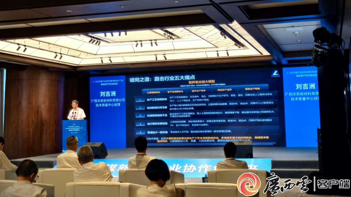 广西华昇新材料有限公司作“智升氧化铝”AI赋能主旨发言。广西云-广西日报记者 梁菁惠 摄 活动现场,百色市、防城港市、河池市、崇左市、来宾市分别作新材料产业招商推介。中南大学教授李凯作“铝基新材料产业发展现状及未来发展方向”主旨发言。广西华昇新材料有限公司作“智升氧化铝”AI赋能主旨发言。入桂企业代表湘潭电化集团有限公司作分享发言。