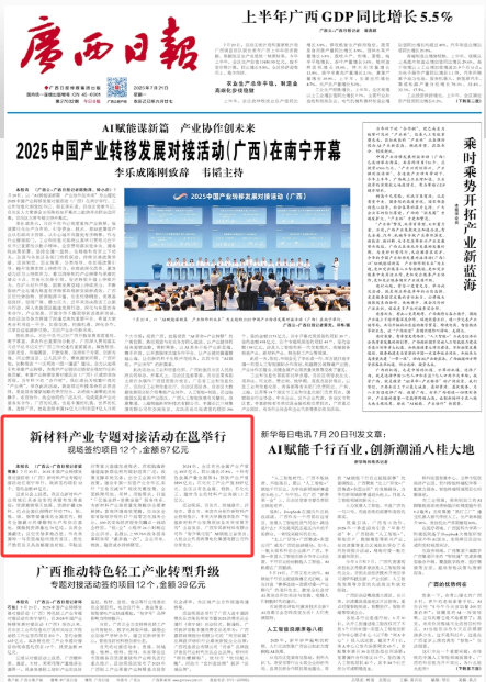 新材料产业专题对接活动在邕举行 现场签约金额87亿元 |