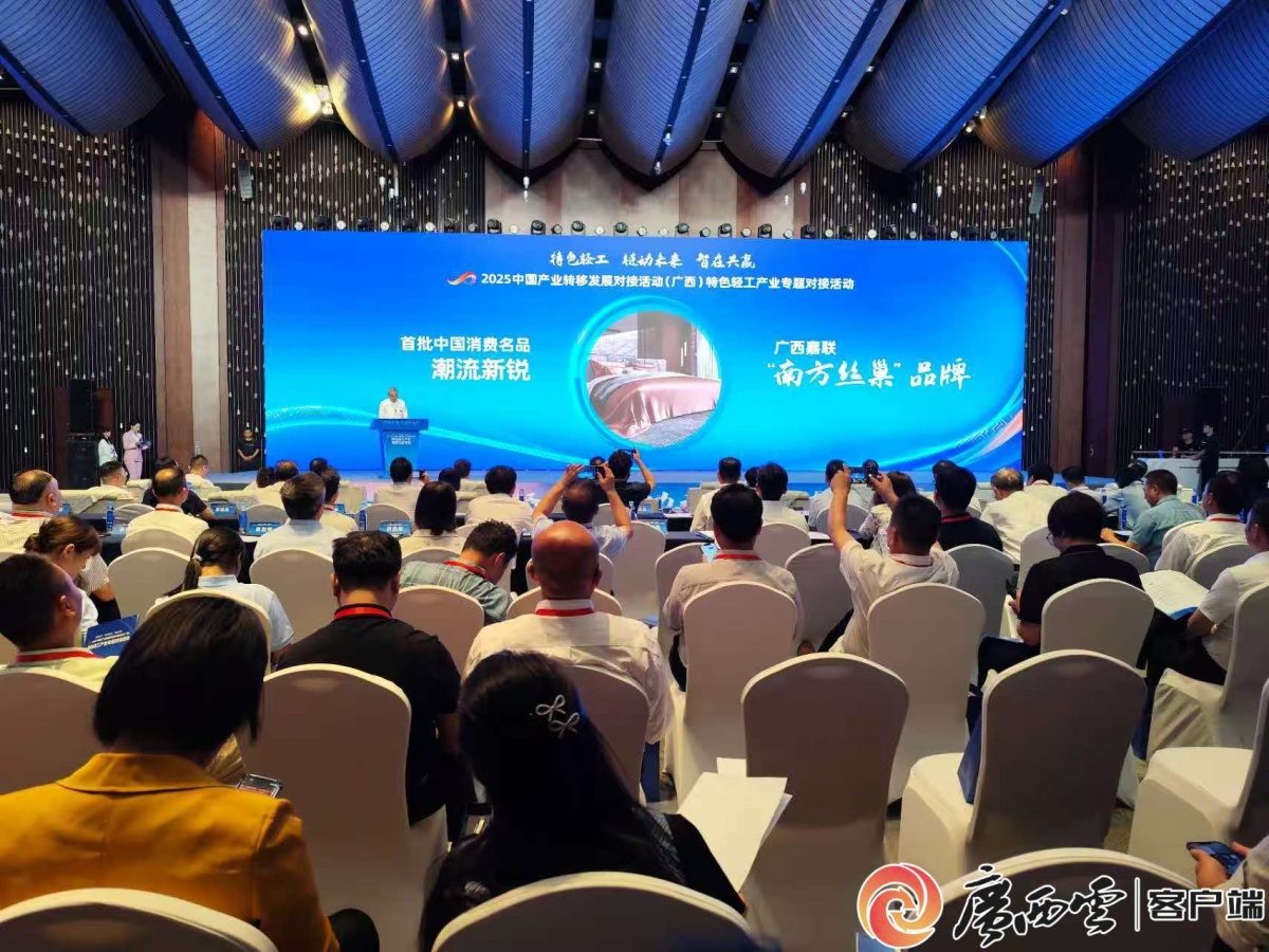 特色轻工产业专题对接活动现场。广西云-广西日报记者 邱石佑 摄 记者从对接活动上获悉,广西糖料蔗、蚕茧、木材、茉莉花等产量稳居全国第一,具备发展轻工纺织产业的良好基础,板材、造纸、食品等行业发展走在全国前列,电动自行车、黄金珠宝、智能家电产业快速崛起,“桂字号”品牌影响力持续提升。