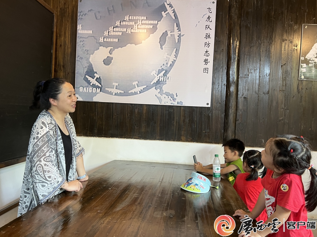 游客带着孩子前来参观,讲述中美军民并肩抗击日寇的历史。广西云-广西日报记者 覃文武 摄 暑假以来,不少游客带着孩子前来溶洞参观。现役军人粟吉勇利用假期,带着家人来到桂林飞虎队遗址公园参观。在山洞指挥所作战室复原场景前,粟吉勇在一幅空战地图驻足:“带着孩子过来,就是让他了解中国人民抗日战争和世界反法西斯战争的故事,认识到今天的生活来之不易。”