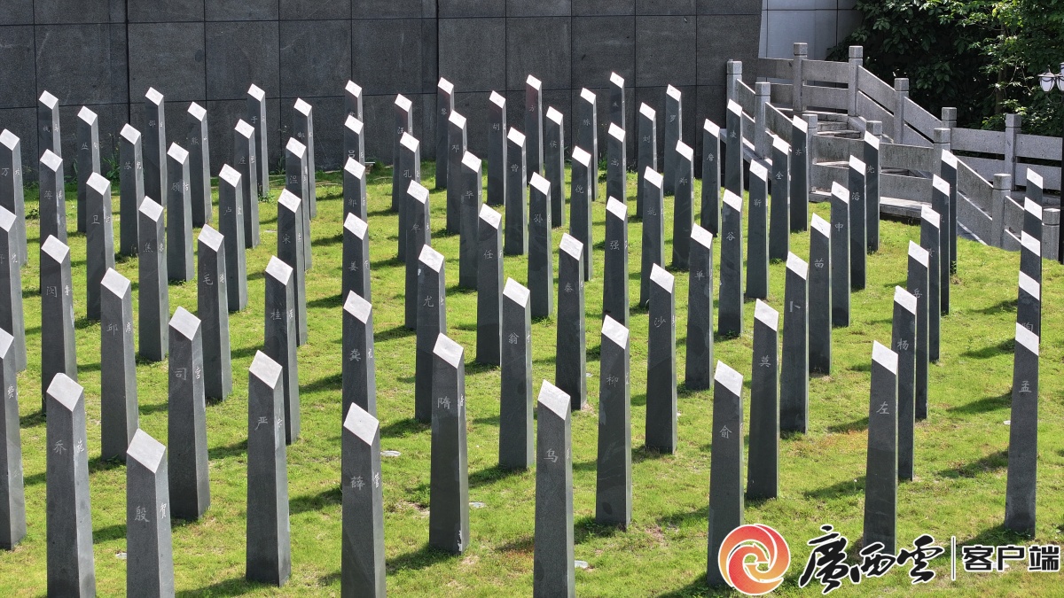 方尖碑列阵,令人震撼。 经过浴血鏖战,中国军队以伤亡1.4万余人的代价,伤毙日军5000余人,“俾顽敌聚歼,敌酋中村正雄授首,卤获战利品无算”,是对日军攻坚作战的一次重大胜利。中村正雄为日军第5师团第21旅团长,是本次战役被歼灭的日军前线最高指挥官。 从南牌坊向山顶攀登,需经331级台阶。这个数字,代表着中国军队三路冲锋、三战克关的胜利印记。 登上山顶,一座纪念塔赫然矗立,其造型如同一柄直刺苍穹的刺刀。纪念塔背后的阵亡将士公墓,三块花岗岩呈“品”字形排列。“那是中华民族最坚硬的脊梁,也是英烈们用生命书写的‘品格’。”讲解员龙结萍声音哽咽,“这里刻着3400位烈士的姓名,而更多英烈没有找到名字,也长眠于此。” 昆仑关战役的胜利,不仅是军事上的胜利,更是全民抗战的胜利。据不完全统计,仅南宁周边地区先后有6万余名青壮劳力和大批畜力及车辆投入支前活动,运送弹药无数、运送伤员上万人次、妇女自备布料做军鞋2.1万余双……数字背后,彰显了中国军民同仇敌忾、共赴国难的坚强意志。当时,中国陆军第五军军长杜聿明对采访昆仑关战役的记者说:“本军的胜利,其实也就是民众的胜利。” 二 盛夏时节,昆仑关松柏苍翠,郁郁葱葱。 南宁市兴宁区昆仑镇昆仑村古棣坡村民欧小燕,一手牵着7岁的儿子韦裕坤,一手挽着朋友8岁的女儿黄语竹,向孩子们讲述那段抗战故事。 “小时候,爷爷告诉我,昆仑山留下了许多烈士的遗骨,村民们看到后,都会小心翼翼地收集起来,妥善安葬。”欧小燕指着纪念塔说,“塔高14.74米,这个高度既是纪念历时14天的浴血奋战,也是缅怀伤亡的1.4万多名将士。” 这样温馨而庄重的场景,每天都在昆仑关上演。“这里是爱国主义教育示范基地,每逢清明节等节日,周边上万群众自发前来祭奠,他们说‘来看老熟人’。”龙结萍的话语充满敬意。 “每年9月,我们都会举行‘开学第一讲’公益课堂,培育青少年爱国主义精神。”南宁昆仑关战役遗址保护管理委员会副主任王晓玲说。她介绍,每年有超30万人次的参观者前来追寻历史足迹,缅怀先烈英魂。