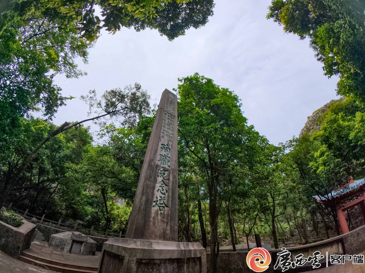 (王靖/制图) 【现场探访】 80多年前,他们与桂林共存亡——探访三将军殉职纪念塔和八百壮士墓 夏日,桂林市七星景区普陀山博望坪,桂花树与枫树林中蝉鸣阵阵。 三将军殉职纪念塔静静耸立,抗战时期为保卫桂林牺牲的三位将军和八百壮士长眠在这里。 这片绿水青山,留存着600多年前徐霞客的足迹,也浸润着80多年前桂林保卫战中国军民的热血。