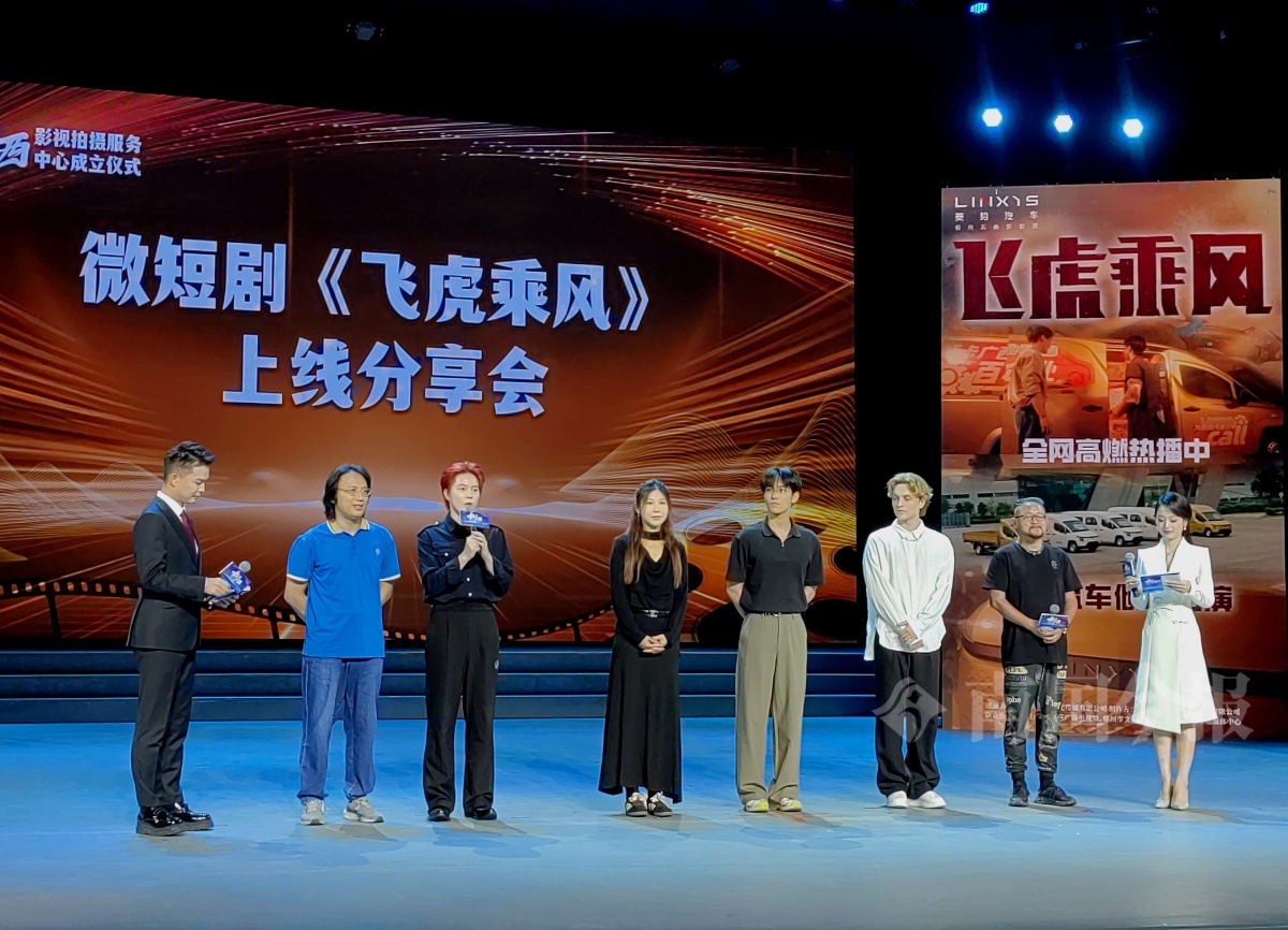 现场分享。记者廖艳明 摄 该剧以两位中美青年穿越至1944年柳州抗日战场、参与救援飞虎队飞行员为主线,将抗战精神与柳州工业记忆巧妙结合,创新展现“微短剧+红色文旅+工业记忆”的跨界联动。 微短剧《飞虎乘风》7月7日在柳州开拍,8月15日在抖音等平台上线,至今播放量已突破五千万。