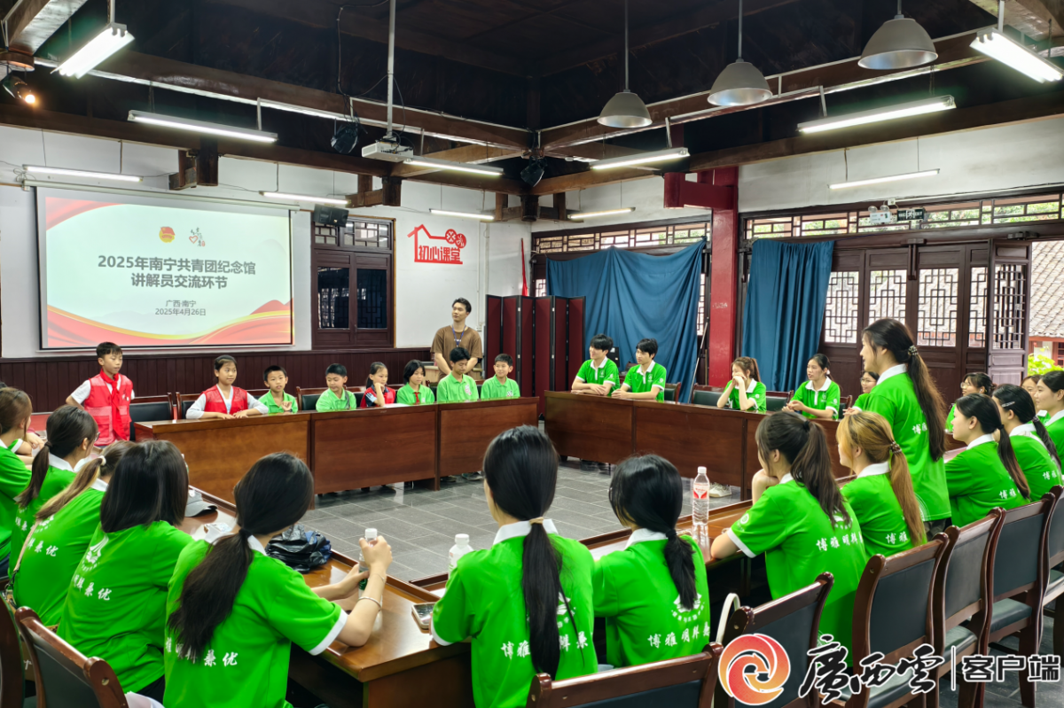 青少年志愿者讲解员杨俊逸正在对桂雅路小学储备讲解员进行带训。南宁市青年志愿者协会供图 线上通过“桂志愿”云平台核验志愿服务记录等相关信息,要求申请者注册且服务时长超20小时;线下则设置志愿服务知识、讲解能力、应急处置三大模块考核。2023年以来,累计接收370名志愿者报名。 12岁的郭皓轩担任2024年志愿者讲解员。“他不仅普通话标准,还对那段抗日救国的故事有着自己的理解,能讲出情感和温度。”指导教师如是评价。 “育”字赋能:理论淬炼与实践锤炼相结合 培育体系是打造专业讲解队伍的关键。南宁依托自治区、市两级党史专家资源库,制作《青少年志愿讲解员培训手册》,开设“南宁共青团百年发展史”“邓颖超与南宁革命”等专题课程。 除了理论教学,更组织“沉浸式研学”——赴广西民族博物馆、林景云故居、莫文骅故居等红色地标开展“重走革命路”实践教学。 11岁的讲解员杨俊霆在参观林景云故居后深有感触:“触摸革命先烈使用过的物品,听后人讲述他们的故事,我才真正理解什么是信仰。”这种情感共鸣,让他在讲解中更能打动观众。 培训还针对不同年龄段设计差异化课程:对青少年志愿者们采用“语速放缓、增加互动”策略;对青年志愿者则开发“红色精神与青年使命”深度模块。 “讲”字塑形:让红色故事“活”起来 在南宁共青团纪念馆,10岁的讲解员唐安琪正声情并茂地讲述着原是清朝右江镇总兵马盛治的祠堂如何成为南宁青年革命斗争的指挥所,她不是简单复述史料,而是挖掘背后的人文细节。 这种讲故事的方式,源于团队开发的“文物里的青春密码”系列课程。12个专题课程将静态展品转化为“动态教材”,通过“红色故事我来讲”“革命场景我来演”等沉浸式环节,让历史变得可感可知。“孩子听得懂、感兴趣,比单纯看展收获大。”一位家长在听完志愿者讲解员杨俊逸的讲解后感慨道。 这些青少年讲解员的成长,不仅是能力的提升,更是精神的淬炼。15岁的讲解员苏潘吉雅说:“每一次讲解,都是与革命先辈的跨时空对话。我讲的不仅是历史,更是信仰。”
