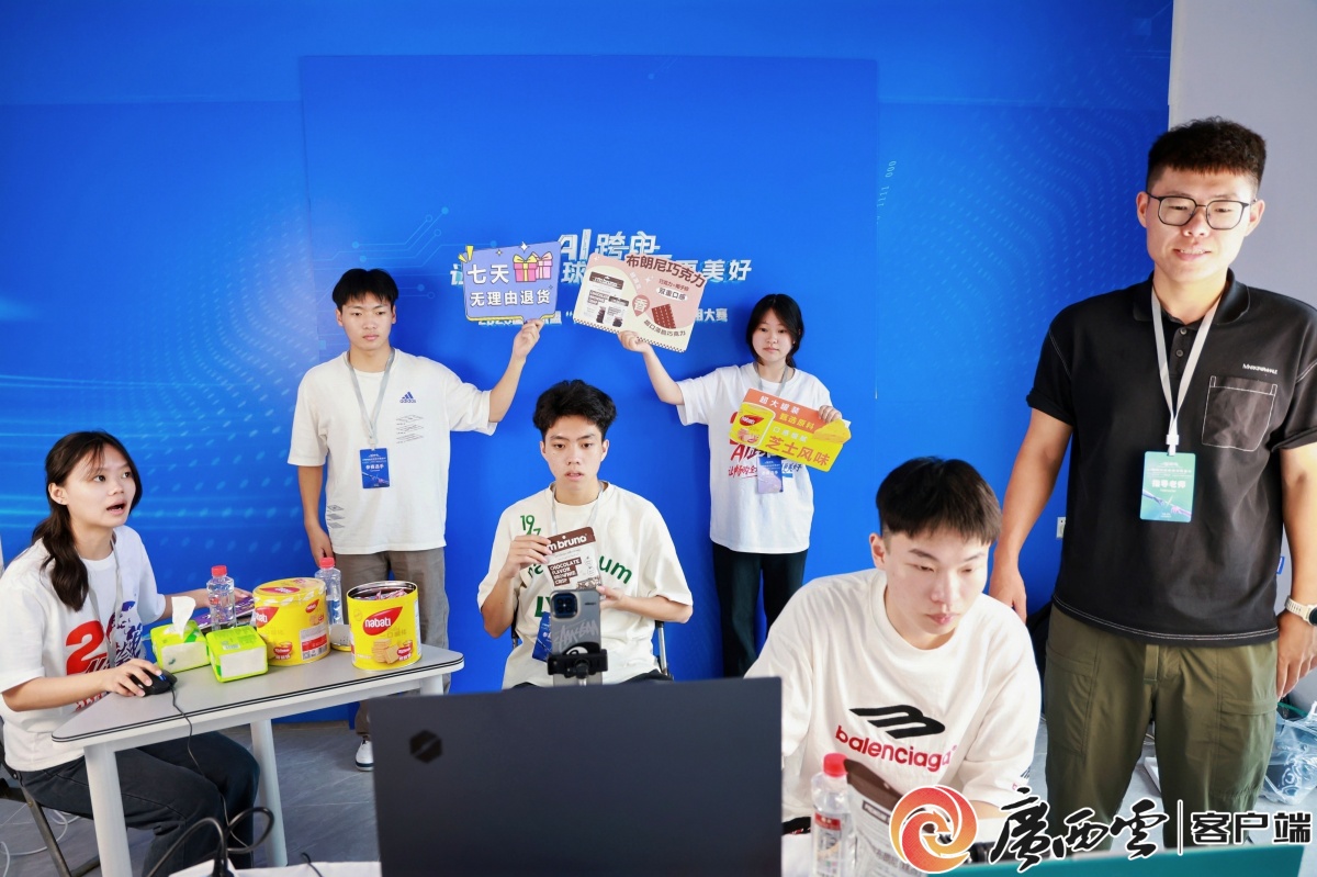 8月28—30日,2025面向东盟“AI+跨境电商”创新应用大赛院校赛道决赛在南宁落幕。 参赛团队在直播带货东盟水果 大赛院校赛道吸引了来自国内外790支团队参赛,其中东盟国家团队45支。经过激烈角逐,最终20支精英战队(含2支跨国团队)晋级决赛。决赛设置电商实战和路演展示两大环节,全面考察参赛团队的创新能力和实战水平。 选手们在电商实战环节中八仙过海各显神通 在电商实战环节中,参赛队伍围绕东盟特色商品设计营销方案,开展直播实战,展现了“AI赋能+本土化运营”双轮驱动的实战能力。路演展示中,参赛团队通过PPT演示及现场答辩,围绕前期比赛过程中所应用的AI技术在电商实战中的应用效果进行展示与讲解。在公证机构监督下,根据电商实战和路演展示两大环节得分,选出了冠亚季军和单项奖。