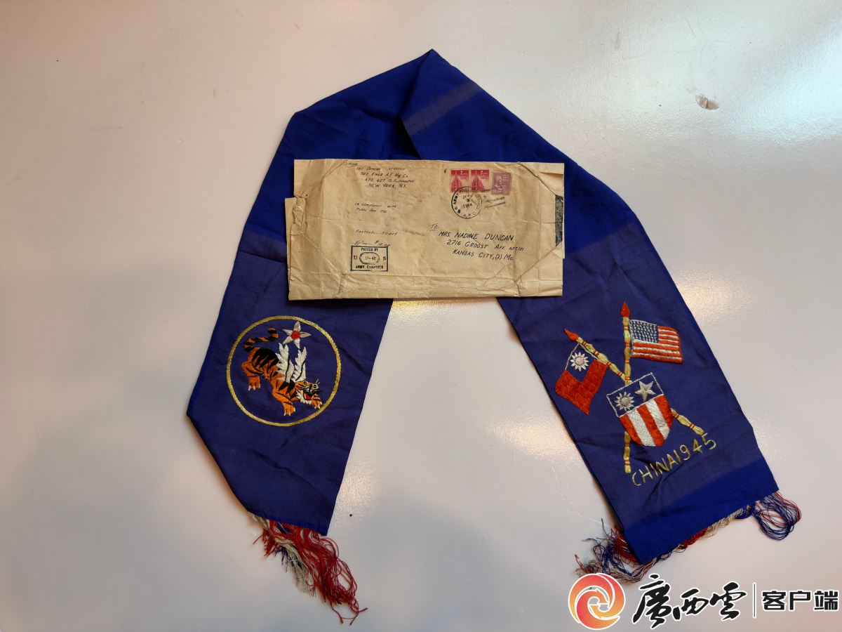 中缅印战区(CBI)飞虎队丝巾。柳州市军事博物园 供图 |