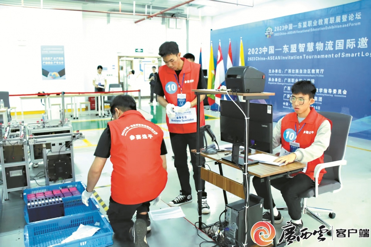 中国—泰国智造现代工匠学院学生参加2023年中国—东盟智慧物流国际邀请赛。 创新“双师四维”协同育人模式,构建国际化产教融合新生态 广西职业技术学院整合四方资源,塑造跨组织国际化教学团队。基于合作培养项目确定统一目标,明晰中外院校、企业各成员的职责,利用线上协作方式克服地域差异,确保信息同步,在课程设计、教学方法上寻求共识,平衡多元特色和统一要求。通过资源整合和优势互补,保障国际化人才合作培养项目的高质量运行。现代工匠学院组建了“双师型”教学团队,涵盖中泰专任教师、企业导师及“园区工程师+泰语助教”,形成“理论授课—技术实操—语言辅助—文化引导”四维教学支撑体系。通过“互派研修+联合教研”机制,开展泰方教师工业机器人技术专项培训4期,年均接收10名泰方教师来华进修,中方教师年均赴泰教学指导超200人次。同时,积极搭建支撑泰方教师与企业员工发展的平台,推动职业教育服务国际产能合作。培养了具有产业能力和跨文化交际能力的中泰“双师型”教学团队40人;先后为泰国29所职业院校培训教师95人次,有效提升其教学能力;开展了线上线下15期校企人员培训班,累计培训9000余人次,提高了本土技能人才与企业的适配性,服务国际产能合作。通过构建“校—校—企—企”四方共育机制,重塑了跨国教育生态,形成了“装备—标准—资源”三位一体的国际化共享体系。现代工匠学院开发专业标准3个、课程标准11个,获自治区教育厅认定国际化课程4门、教材1部、培训资源包7套;4项教学资源获国际认证;自编中英、中泰双语活页教材3本。学校联合江苏汇博机器人股份有限公司共同研发实训教学设备,其中,4个教学装备通过泰方认证;建成3套工业机器人应用编程一体化教学工作站,总价930万泰铢,授权泰方使用。 坚持融通中外理念,强化“中文+技术”复合型人才培养 广西职业技术学院围绕知华友华教育,厚植学校“思茗”文化,面向现代工匠学院学生开设“中文+”广职特色课程,融合茶艺、陶艺等民族文化课程,并在此基础上,结合专业开设创新创业课程。2023年以来,先后组织了3批中国学生赴泰开展“语技融通 中泰交流”志愿活动,促进了中泰青年的专业技能和文化的交流。累计教授中文课程600余课时,推动语言学习与文化体验深度融合。形成了“文化理念引导+育人环境打造+特色课堂与活动对接”的教育机制,整合优质教学资源,利用AI助学平台打通人才培养路径,创新“双师四维”团队精准对接产业需求。通过机制创新、资源整合、产教融合与文化赋能,学校成功探索出一条职业教育国际化的可复制路径,成为“一带一路”职业教育合作的亮丽名片。 学校获评首批“中国—东盟职业教育卓越合作伙伴”,人才培养模式赢得泰国职教委认可,5家泰国媒体对其进行报道。学校党委书记梁裕在《职教中国》节目中分享了项目建设经验,录制的专题视频课程提供给国家教育行政学院的网络培训平台播放。学校领导受邀在各类主题论坛、会议分享建设经验7次。该项目成果还在广西电视台《出彩职教人》职教出海专场栏目中展示。 未来,中国—泰国智造现代工匠学院将持续扩大国际学生培养规模,深化国际化产教协同培养模式,加强国际化数字资源建设,为培养当地智能制造业急需人才的可持续发展提供动力。 (文图由广西职业技术学院提供)