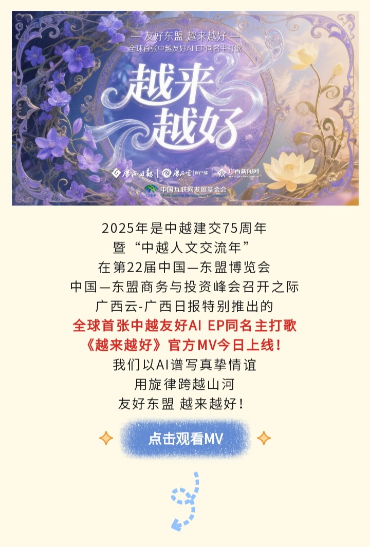 友好东盟 越来越好|首发!全球首张中越友好AI EP同名主打歌《越来越好》官方MV上线!