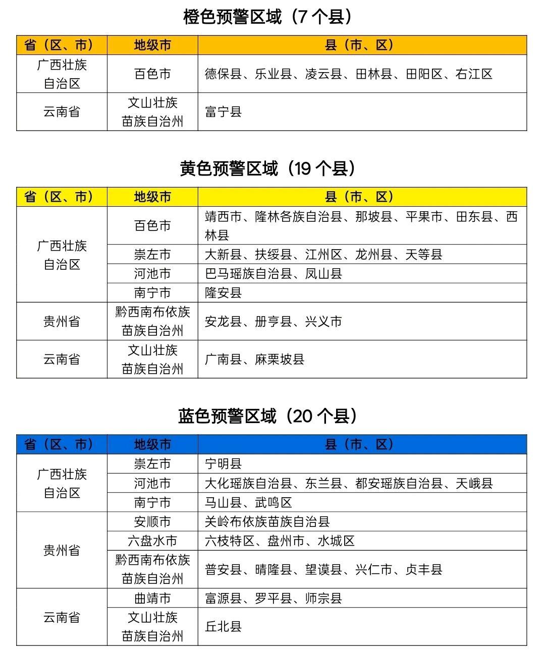橙色预警!广西、云南部分地区发生山洪灾害可能性大 |