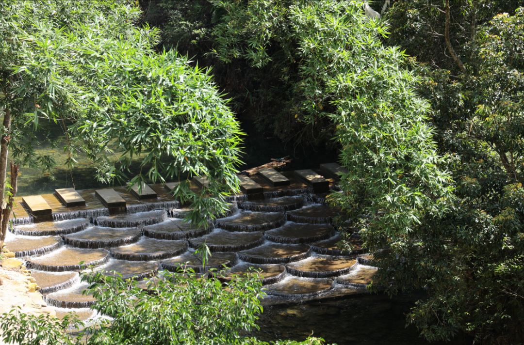 ▲百里村鱼鳞坝,就像一片片鱼鳞,在阳光的照耀下波光粼粼,构成一幅美丽的田园风光画。 红色基因注入绿色工程:小流域治理焕新颜 今年刚刚完工的防城区大菉镇百里村生态清洁小流域水土保持工程,是这份生态答卷上的亮眼一笔。它不仅为区域生态文明建设增添了厚重砝码,更为乡村振兴铺就了鲜亮的生态底色。谈及项目的实施理念,大菉镇副镇长杨秀媚深有感触:“我们镇依托现有红色资源,把党建引领、红色传承、乡村建设紧密融合,坚持把改善人居环境与红色文化传承相结合,把提升村民‘幸福指数’作为红色村庄发展的出发点和落脚点,实施推进小河流域整治项目,既修复了生态,又让红色文化有了更鲜活的‘载体’。”