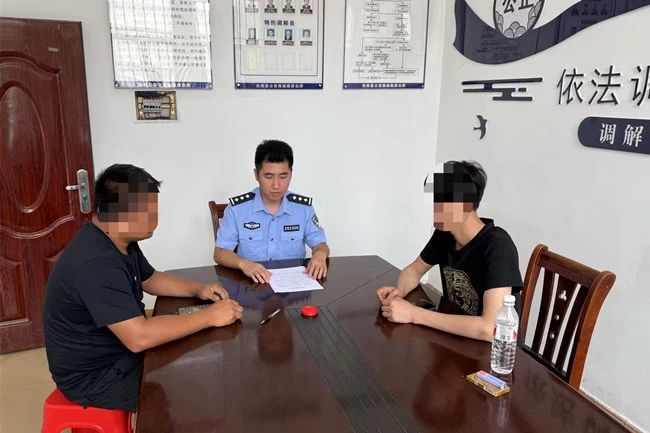民警邓朝兴正在调解一起矛盾纠纷 7 月 30 日上午,扶绥县山圩镇的苏先生因广告牌被人恶意损毁,随向扶绥县公安局山圩派出所求助。 值班民警邓朝兴赶到现场后,立刻查看情况,发现固定广告牌的螺丝被锈蚀,地面上还散落老化塑料垫片。他安抚苏先生后,对周边商户和住户进行走访,进一步了解情况。 不多时,邓朝兴了解到,前一晚苏先生的招牌被大风刮落在地,次日被热心的奚先生扶起,广告牌没有损坏。谁知,广告牌又被大风刮倒,奚先生再次扶起时却发现已经损坏。了解情况后,邓朝兴才意识到苏先生的误会所在——苏先生既没看见广告牌被大风刮落的过程,也没看到奚先生两次帮忙扶起的举动,便造成有人恶意损毁招牌的误解。 邓朝兴明白,若处理不当很可能让误会升级,于是找到奚先生与苏先生会面,就广告牌损坏问题进行调解。经过邓朝兴耐心细致地沟通和公正合理地调解,最终,苏先生弄清了事情的来龙去脉,两人握手言和。 扶绥公安更多化解矛盾纠纷的瞬间