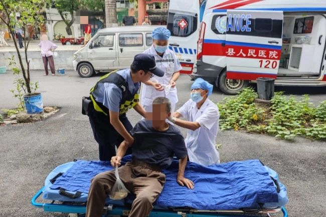 辅警黄家勇救助一名受伤的老人 8 月 6 日上午,扶绥县公安局特巡警大队辅警黄家勇在新宁镇丁字街巡逻时,发现一名老人倒在路边,表情痛苦。 黄家勇立即停车查看,尝试与老人沟通,但老人意识模糊,无法清晰回应。他当即拨打 120 急救电话,详细说明现场位置和老人的状态,请医护人员到场救助。考虑到老人可能存在未知伤情,避免移动对其造成二次伤害,黄家勇没有贸然行动,而是在老人周围设置警戒区域,疏散聚集的围观群众,为老人留出安全空间。 等待救护车期间,黄家勇始终守在老人身旁,观察其身体状况。救护车到达现场后,黄家勇协助医护人员将老人送医,待老人情况稳定,他才放心返回岗位继续巡逻。 扶绥公安更多暖心助民的瞬间