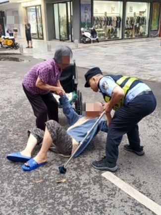 辅警梁超安救助一名摔倒的老人 扶绥公安 “解铃人” 巧化矛盾促和谐