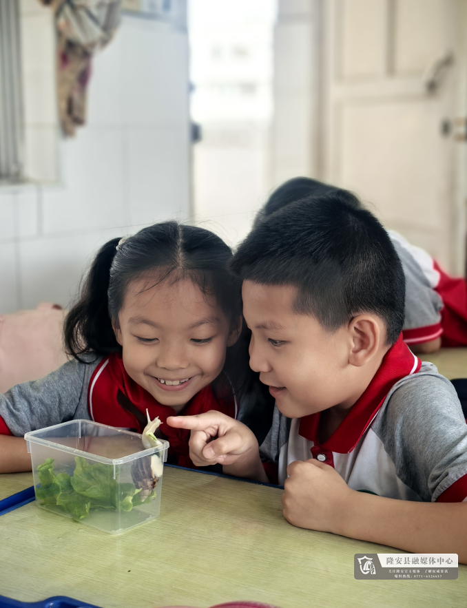 “邱老师科学课每节课都有实验,非常有趣,非常快乐。”隆安县第一小学学生何乐说。 隆安县第一小学学生吴卉媛告诉记者,我很喜欢上邱老师的课,因为她每节课都给我们做很好玩的实验,很有趣,带我们去植物园观察小动物、种花,还带我们养蚕宝宝,摸白玉蜗牛。