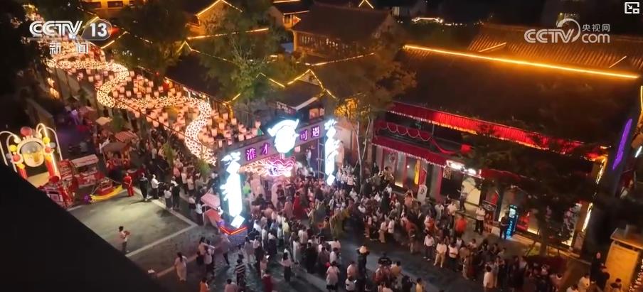 这个国庆中秋假期,一股“反向旅游”的热潮涌向各县域乡村。在广西南宁马山,一场融合民俗、美食、非遗与国风的文化盛宴吸引游客纷至沓来。当地的农民代表队身穿用稻穗、竹篾等材料制成的创意服装,在“庆丰收‘村T’”走秀上自信走秀,将气氛推向高潮。 夜游非遗“活”起来 乡村民宿“火”起来 假日“夜游”持续升温,为激活夜间经济注入新动力。在江苏盐城建湖县九龙口淮剧小镇,千年非遗药发木偶戏在烟火中绽放魅力,数百架无人机同步升空,幻化出灵动造型。