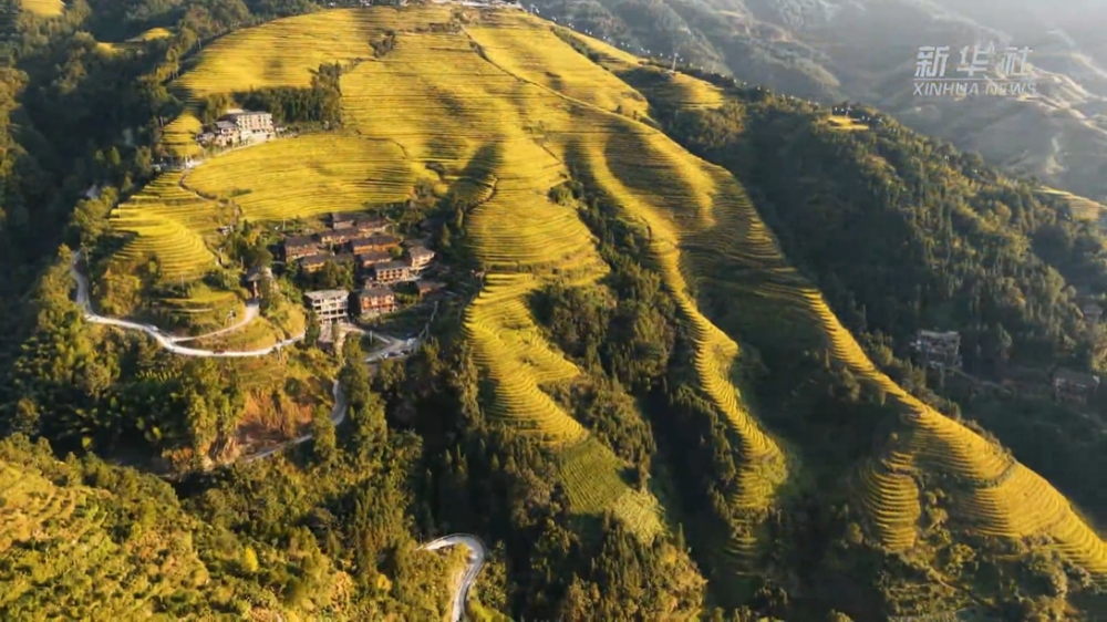 国庆中秋假期,广西桂林市龙胜各族自治县龙脊梯田水稻披金,层层叠叠的金黄稻田,吸引了世界各地的游客前来观赏。 “这是我第一次来到龙脊梯田,看到了祖国不一样的风光。这边的人民很热情。”游客张晴墨说。