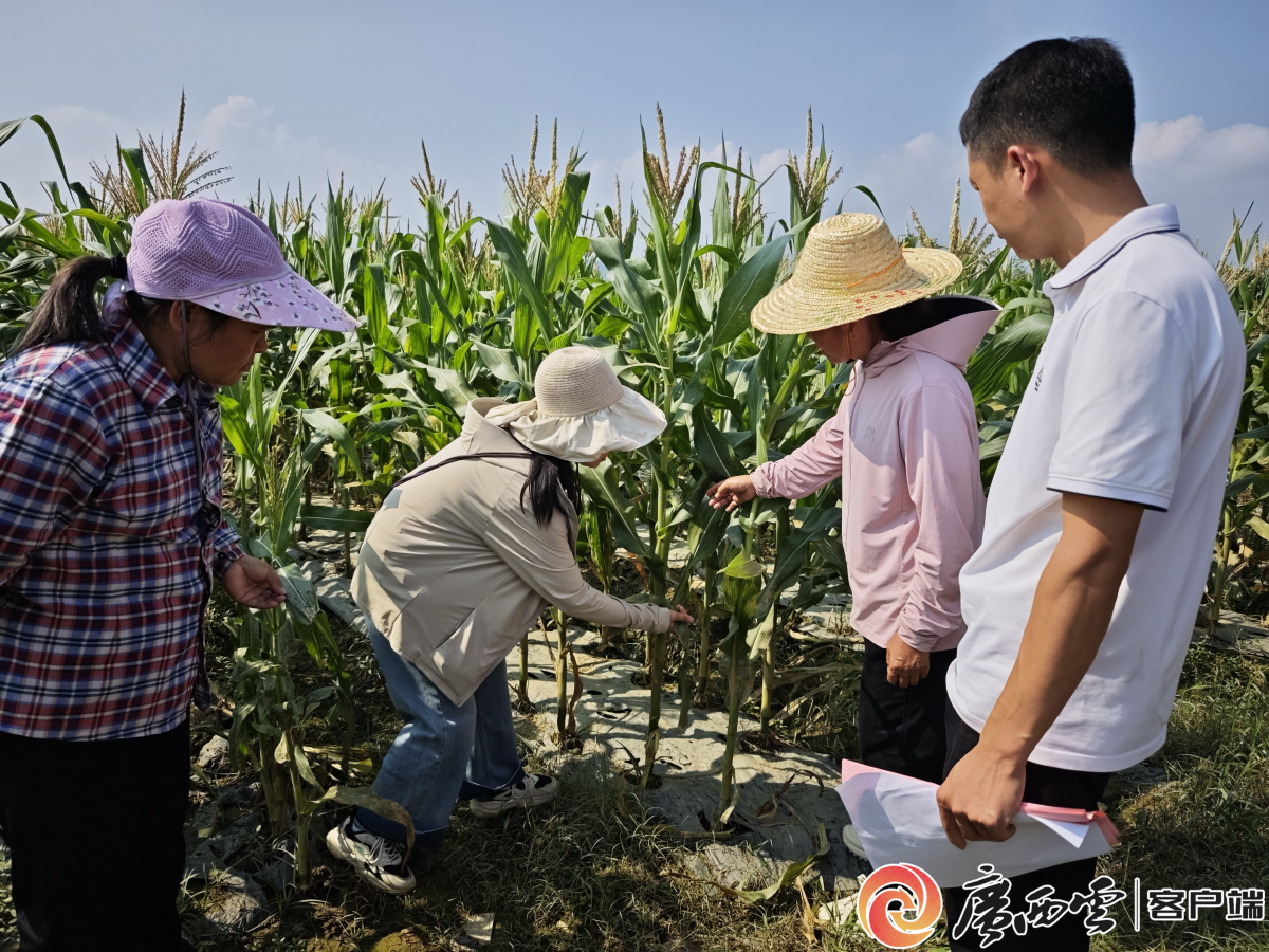 农技指导小组成员将服务送到田间地头。通讯员 莫彩恋 摄 10月9日,洪水退后,田阳区百育镇百育村农户李兰根站在自家的玉米地旁,望着部分倒伏和浸泡的庄稼,道出了她的担忧:“最担心这些正在扬花授粉的玉米棒,怕后续授粉受影响,导致收成下降。”她家种植的2亩玉米地在台风期间积水深达50厘米,尽管雨后已及时排水,但因浸泡超过36小时,部分玉米叶片已明显发黄并出现斑点。 了解到这一情况后,田阳区农业农村局的技术人员来到她的玉米地,查看受淹情况,分析受损程度并指导应对措施。 “目前当地玉米正处于扬花授粉期,如果积水没有淹没玉米棒,仍有挽救的可能。”田阳区农业农村局高级农艺师韦兰新在现场向李兰根解释,“可以采取的措施包括去除枯黄叶片,重新培土和施肥。” 在技术人员指导下,李兰根和家人开始清除农作物发黄叶片,进行培土,并喷洒杀虫剂和叶面肥。 目前,田阳区农业农村局组建的多支农技指导小组已分赴各乡镇受灾村屯,指导农户开展农田排水、减灾保产和病虫害防治等工作,相关农技服务正有序覆盖全区受灾区域。 就业帮扶车间逐步恢复