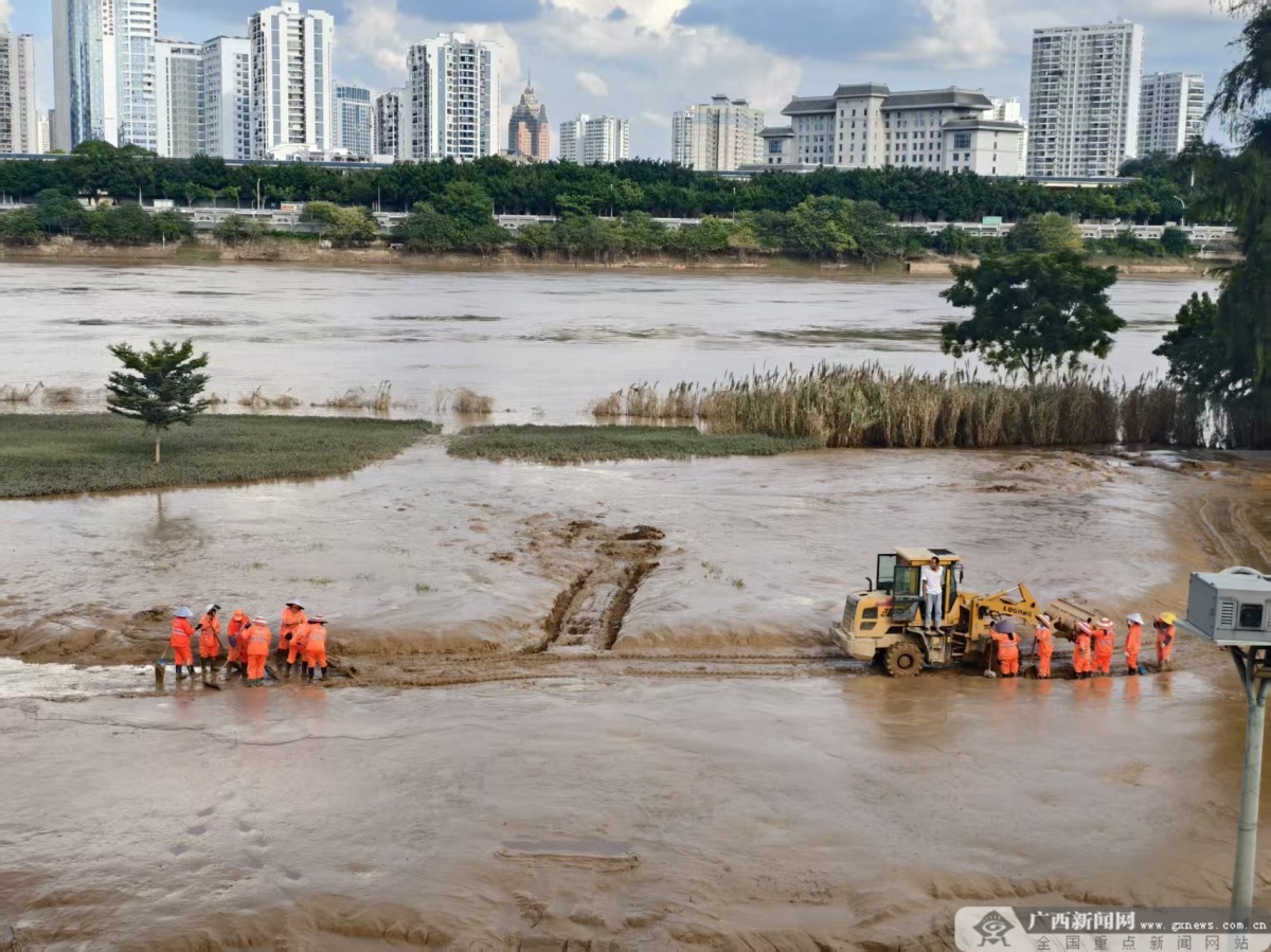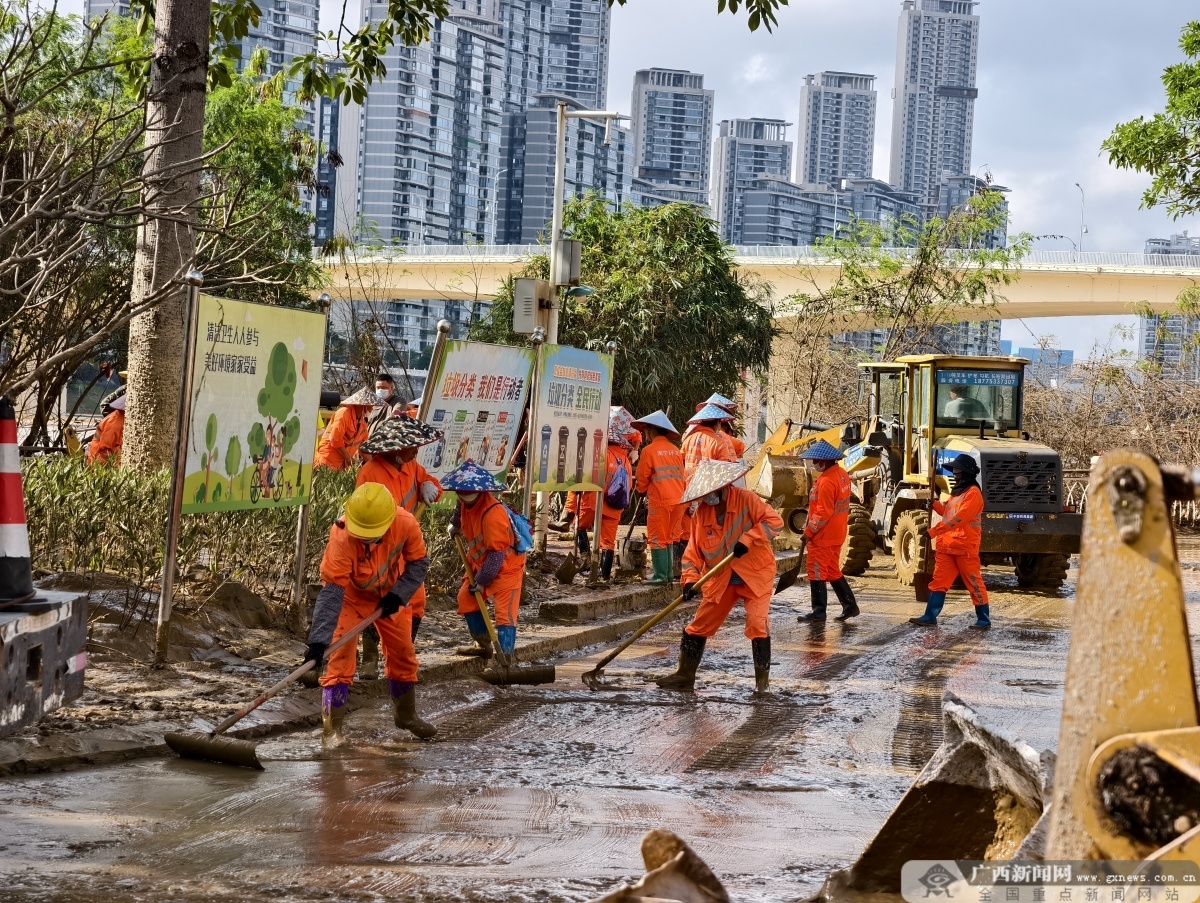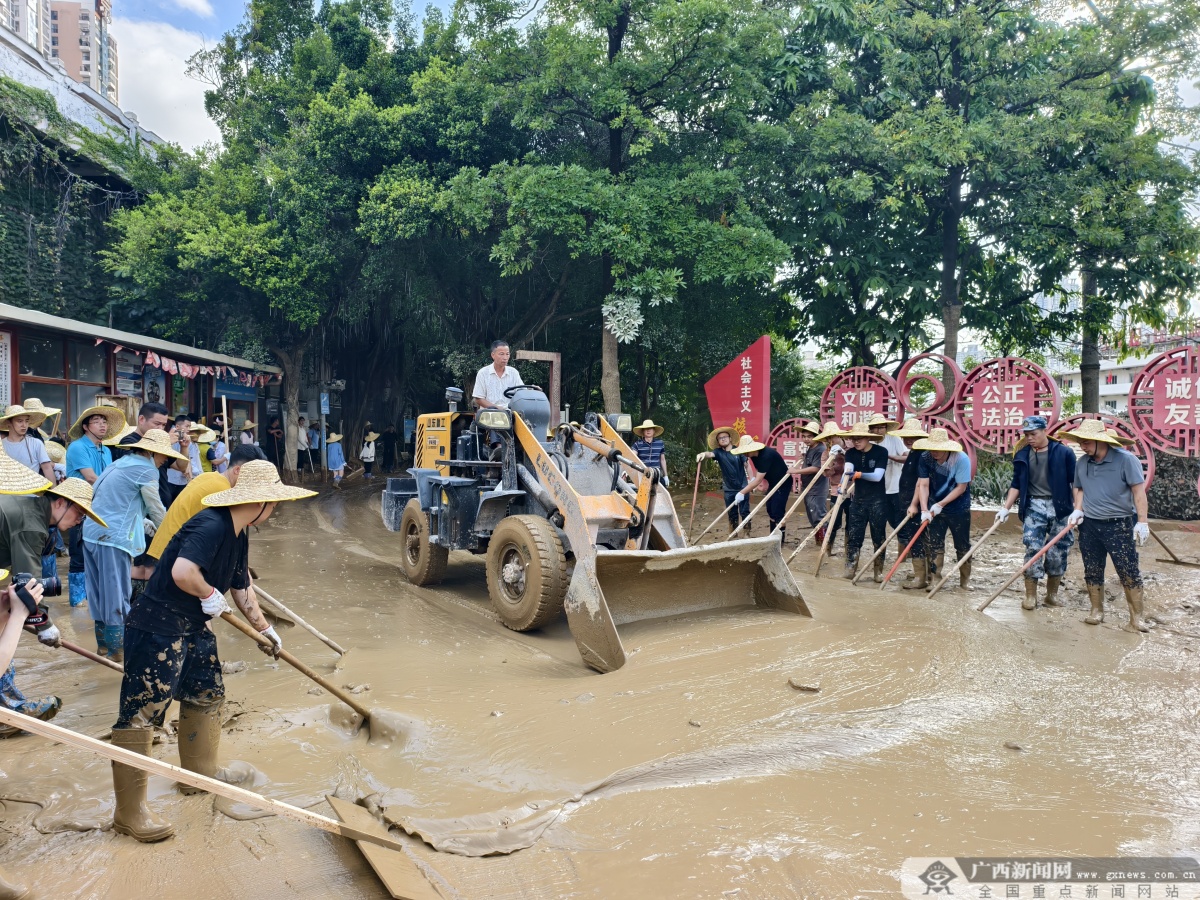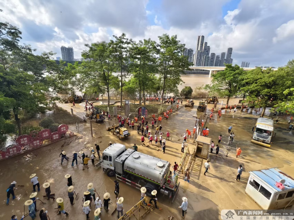 10月13日,邕江水退后,南宁市邕江沿岸公园开启了清淤大行动。街道、消防、公园管理、社区志愿者,以及前来支援的各单位力量,齐心协力投入清淤工作。
