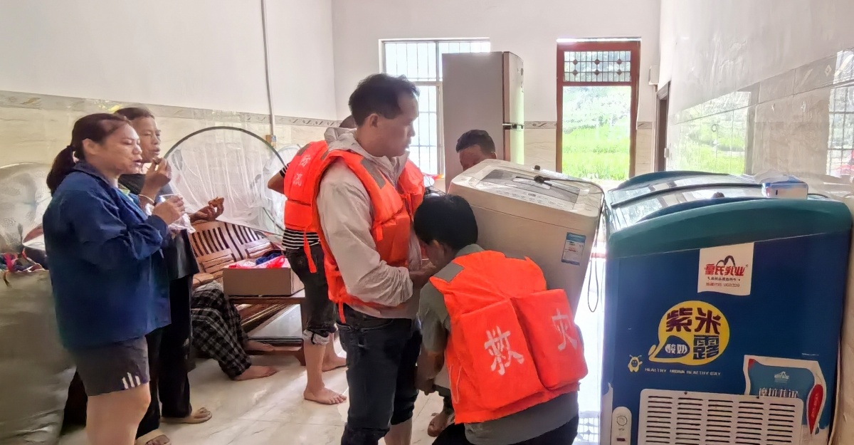 田东县作登瑶族乡巴立村村干部协助村民搬运家中的物品。通讯员 黄艳萍 摄