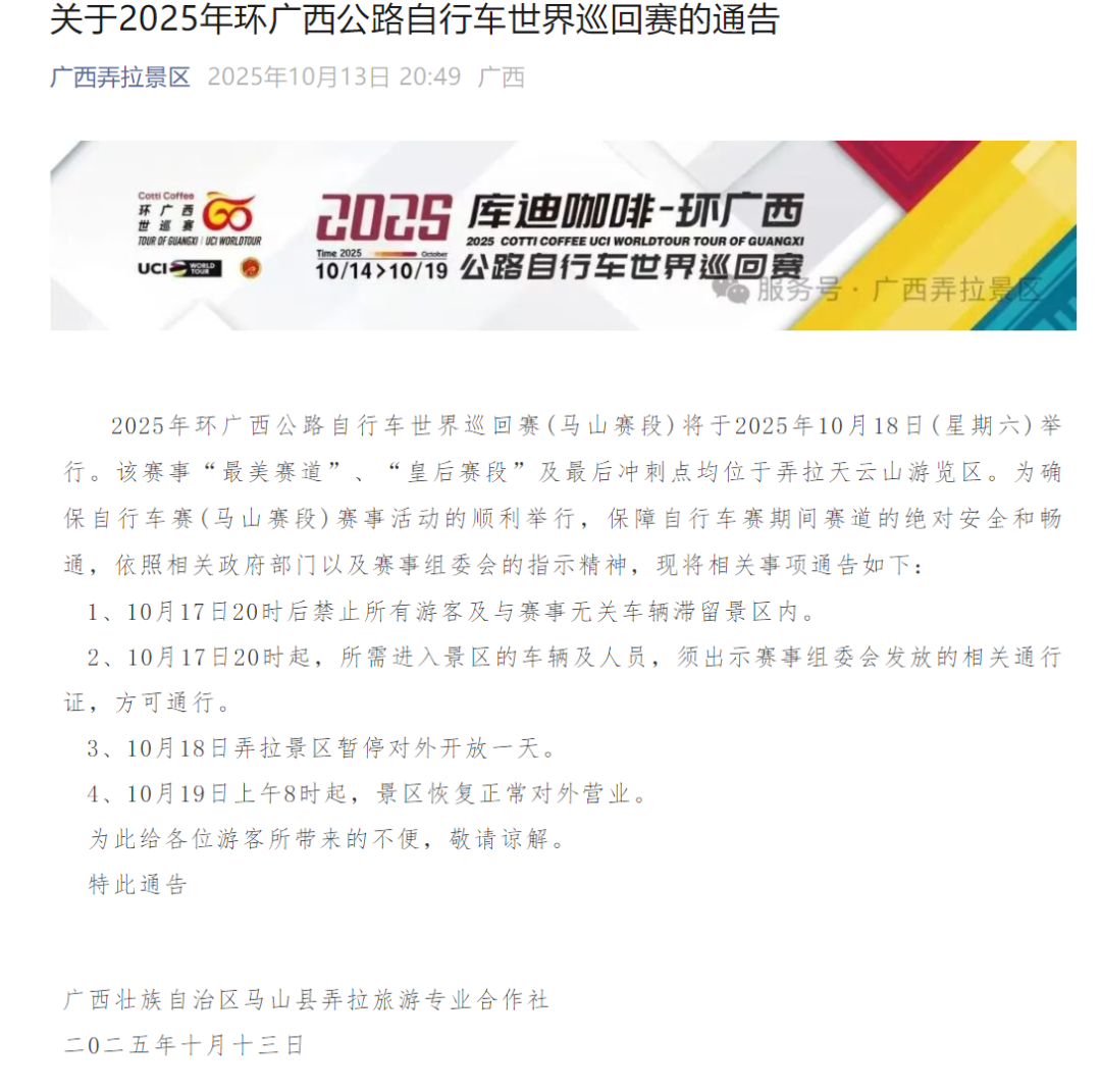 注意绕行!2025环广西世巡赛期间,多市道路通行有调整,攻略来了→ |