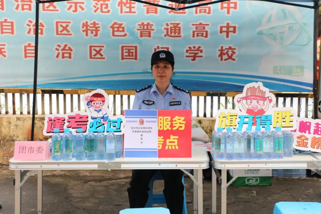 此外,公安机关还在各考点设置服务点,开通身份证办理“绿色通道”,最大限度为考生提供及时、高效、便捷、暖心的办证服务。 护考暖心事 上思县公安局户政服务中心户籍民警陆卡娜:为丢失考试证件的考生办理临时身份证明