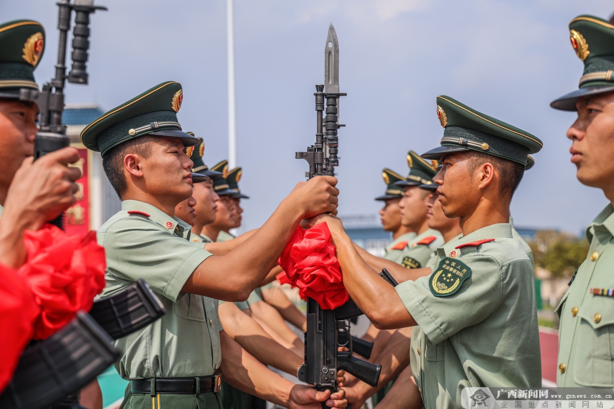 广西新闻网来宾10月21日讯(通讯员 果志远)近日,武警广西总队来宾支队为新兵举行授枪仪式,以此激发新兵扎根军营、献身国防的责任感和使命感。