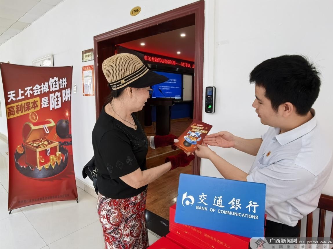 交通银行广西区分行员工结合非法集资典型案例,用通俗易懂的语言向老年群体揭示非法集资常用手法和骗局套路,讲述非法集资对老年群体的危害,向老年群体传授防范非法集资的技巧。