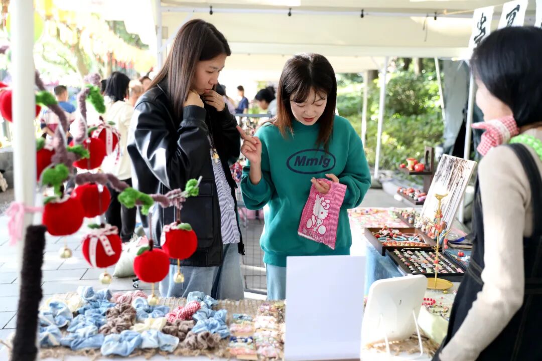 市民游客在集市中解锁“山水+艺术”的新型城市生活方式。记者 陈静 摄 多元文化交融 解锁市集“新玩法” 走进市集,仿佛踏入一座流动的文化博物馆。非遗手工艺品摊位前,非遗代表性传承人指尖翻飞,傩面具绘画、漆器制作等尽显精致;文创区里,桂林博物馆带来的梅瓶复刻摆件、甲骨文纹样摆件等,让有千年历史的文化遗产以新潮模样“圈粉”;广西师大出版社的图书摊位前,文学爱好者沉浸其中,翻阅着描绘桂林山水的散文诗集;桂林特色小吃区更成了“美食天堂”,桂林凉菜、桂花饮品的香气交织,引得游客排起长队。