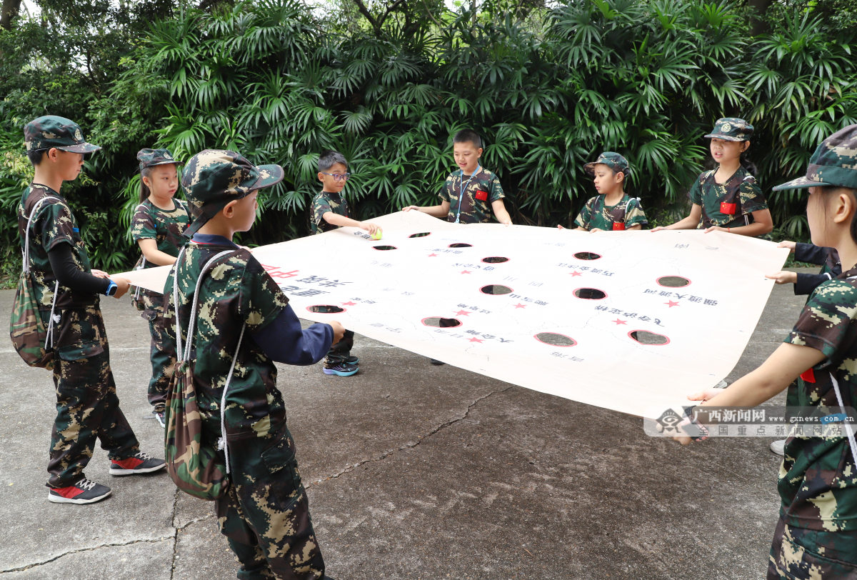 学生们开展“重走长征路”拓展活动。 广西新闻网南宁10月28日讯(通讯员 李小荣 黄捷)10月26日,“赓续红色血脉·筑梦国防未来”青少年国防教育活动在广西革命纪念馆顺利开展,吸引400多名学生报名,最终60人入围参与。 活动在庄严的军歌声中启动。上午9时,学生们参加了“高唱军歌·学革命史”国防教育课程,通过经典军歌传唱与革命历史讲解,感悟革命先辈英勇不屈的精神。随后开展的户外拓展环节中,“珠行万里”“射击体验”“重走长征路”等项目既锻炼团队协作能力,也让青少年在模拟实战中体会军人训练的艰苦作风。在射击项目体验中,学生在教官指导下分组“对抗”,学习战术配合,现场气氛热烈。