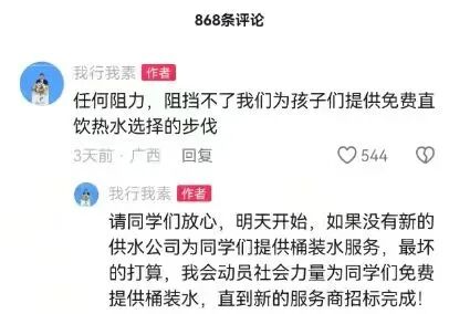 “任何阻力,阻挡不了我们为孩子们提供免费直饮热水选择的步伐。”广西财经学院校长范祚军近日在抖音上的这番表态,引发广泛关注。自2024年9月开通账号以来,他的评论区已成为学生反映问题的快速通道——从宿舍维修到教学改善,留言多获回应,诉求得到跟进。