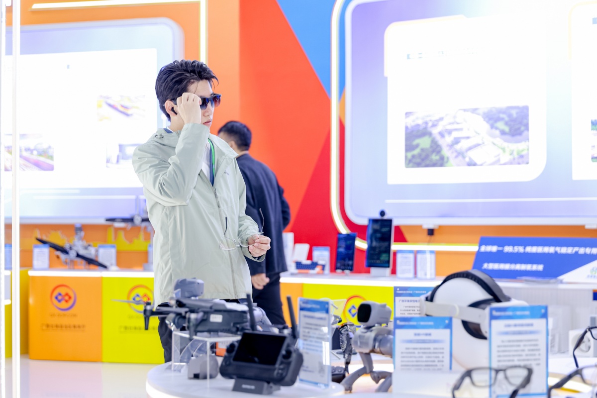 广西馆内,迈越科技带来的AI眼镜吸引不少客商试戴。自治区商务厅供图 开放门户展区内,广西汽车集团有限公司、上汽通用五菱汽车股份有限公司、广西玉柴机器集团专用汽车公司等“广西智造”龙头企业携最新研发产品集中亮相。 “希望借助进博会的平台,进一步拓展我们的产品在国外市场的合作空间,为全球客户提供低空经济动力系统与整机解决方案。”广西汽车集团有限公司五菱柳机副总经理杨勇介绍,这次备受瞩目的航空发动机模型,是集团首批研发的高性能无人机发动机与增程器,融合了高可靠性设计、智能控制与先进材料工艺,具备高性能、长寿命与经济性等优势,可广泛应用于区域物流、农业植保等多元场景。