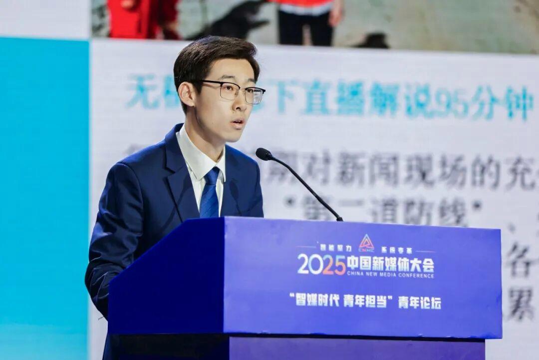五位青年媒体人的脱口秀,让“新媒体人”的鲜活姿态跃然舞台:他们以不同方式回应同一个问题——在时代浪潮中,如何用创造、热爱与行动,定义青春的担当。 一线新闻青年分享: 实践中守正创新 青年新闻人齐聚,既有热烈的“开放麦”,更有一线、详实的主题分享。论坛特别邀请了来自中央媒体、地方媒体、科技机构与国际传播平台的八位青年代表,他们以实践为证,从传播方式的创新,到职业精神的坚守,再到青年群体的时代角色,讲述了智媒时代的“青年力量”。 新华社音视频部记者胡函博,用抖音播放量超过86.8万的《我跟书记去蹭饭》的Vlog创作案例诠释“融合力”。他认为,全媒体记者要做“六边形战士”,“既要有笔杆子,也要有网感。”唯有从一个个新闻现场出发,才能在技能与思维上完成真正的“全媒化”。