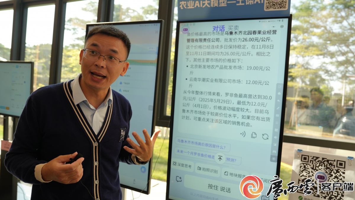 中国农科院原院长、国际农业智库主席翟虎渠(右一)在捷佳润公司考察。记者 王克础 摄 这场由院士带队的考察,正见证着广西AI农业技术走向东盟的生动实践。 展厅就是“开心农场”。温标堂手持平板电脑轻划,屏幕上立即呈现果园里的三维模型:无人车巡园、无人机喷药、智能灌溉系统依数据精准运作。 每株蓝莓的叶片温度、果实膨大速率、土壤pH值实时可见。 “我们在沙漠里种出亩产超3吨的番茄。”温标堂点开一个传感器数据流介绍,这套售价数万元的小院版系统,已让东盟农户实现“手机种地”。 企划部经理吕炬现场演示AI警报功能——当系统识别到老挝金花村菜园出现虫害时,自动推送防治方案并连线当地农技员。“就像给每块地配了24小时待命的专家团。” 翟虎渠仔细查看AI生成的种植报告后评价:“从选种到销售的全链条数据分析,真正让农民告别‘拍脑袋决策’。” 同一时刻,隆安基地技术员陆胜松正根据AI提示调整水肥比例。手机APP上清晰显示:今晨系统通过图像识别,发现B区7号棚蓝莓叶片有0.3℃异常升温,建议增加遮阳时长。“以前巡园靠腿,现在靠AI眼。”他指着棚顶的传感器说,这些设备能捕捉植株蒸腾作用的细微变化,提前预警病虫害。 最让农户称奇的是AI的市场预判能力。去年底,系统根据东盟水果消费数据,建议金城江基地将蓝莓上市期提前两周,正好赶上泰国水果节空档期,每公斤多卖30元。“现在连老挝农户都学会用AI查越南农产品价格了。”陆胜松笑道。 技术出海的“双向滋养”。在捷佳润实验室,工程师正调试新一代多语言模型——基于泰国榴莲园数据训练的算法,意外提升了广西芒果炭疽病的识别准确率。“东盟项目成了我们的‘天然试验场’。”技术总监展示着老挝农户使用语音指令的录像:浓重方言说出的“浇水”,能被系统准确识别并执行。 这种互动正催生新业态。上月上线的中老AI农技培训平台,让200名东盟农技员通过VR设备学习智能灌溉。而尼日利亚沙漠农场的抗旱数据,又被反哺用于改良广西甘蔗种植模型。“就像滚雪球,”温标堂说,“每个海外项目都在丰富我们的农业大脑。”
