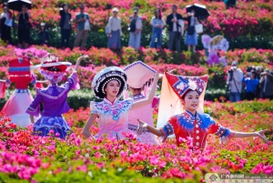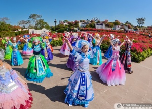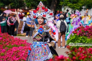 11月15日起,南宁青秀山风景区举办2025年冬季赏花活动,为广大市民游客精心打造“北方秋冬之际,正是南方赏花之时”的暖冬休闲好去处。图为演员在花海中展示民族服饰。记者 周军 摄(广西云-广西日报)