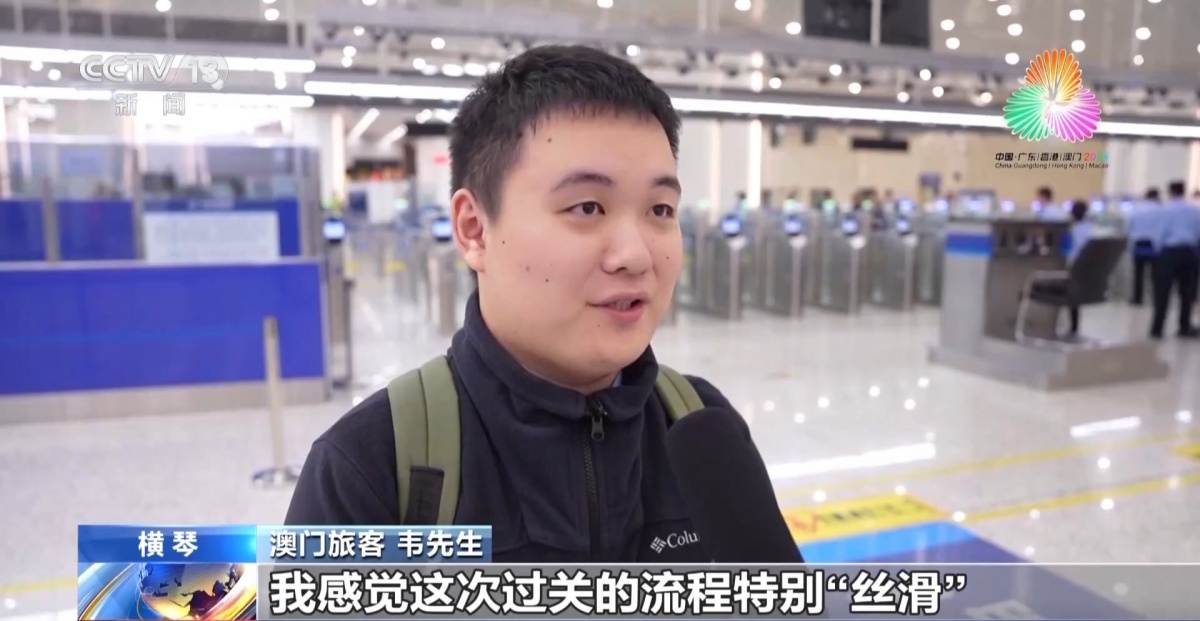 澳门旅客 韦先生:我感觉这次过关的流程特别“丝滑”,我就刷了一个脸,全程差不多十几秒,我就过来了,感觉特别棒。