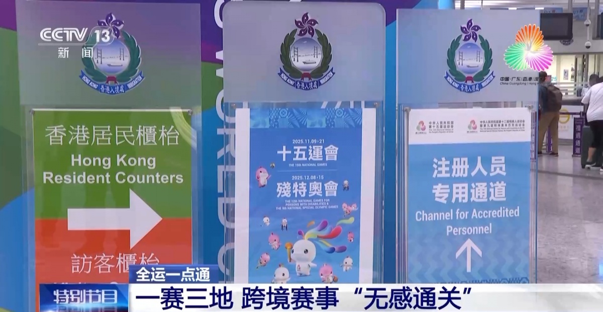 第十五届全运会是首次由粤港澳三地联合承办的体育盛会,从“无感通关”的跨境赛事到“刷脸”通关的便捷观赛体验,大湾区正以体育赛事为媒,推动三地规则衔接、通关便利、设施联通等水平不断提高。 11月8日上午,第十五届全运会一项跨越粤港澳三地的比赛——公路自行车男子个人赛进行,这是全运会历史上首个跨境自行车赛事,100多名运动员在骑行中6次穿越口岸,却无需1秒停顿。