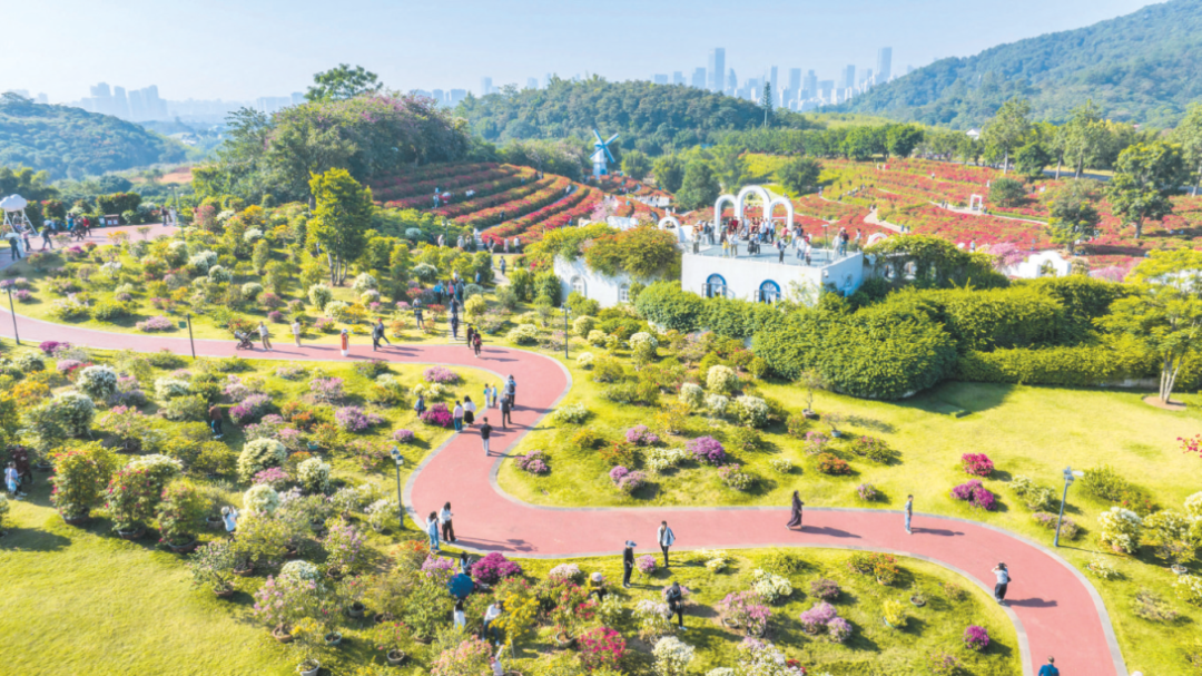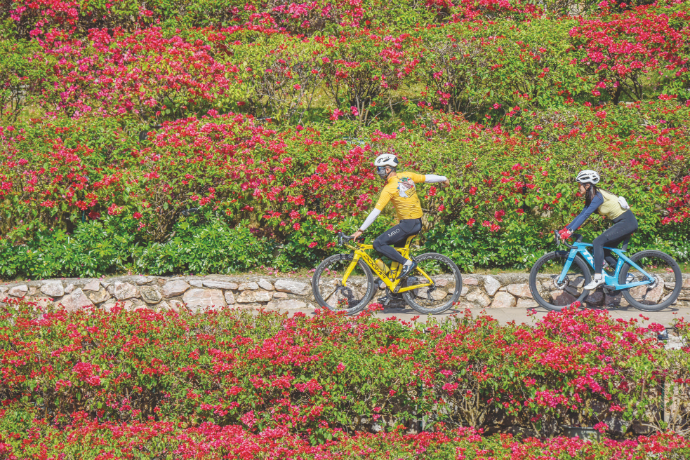 游客在叶子花园花丛中赏花、骑行。 (彭寰 摄) “饱览绚烂秋色,感受叶子花怒放的活力。”游客林女士说,站在叶子花园观景台饱览整个花谷的美景,远处还有蓝白色调的大风车映衬,超级出片。 据了解,活动期间,青秀山风景区开展“花下艺宴——叶子花艺术展演”“民族风潮体验”“叶子花妙物集”“趣玩叶花”科普等系列活动。其中,“花下艺宴——叶子花艺术展演”活动包括“花径巡游”民族服饰秀、“花街弦音”西洋乐演奏、“花影霓裳”花涧舞蹈等。