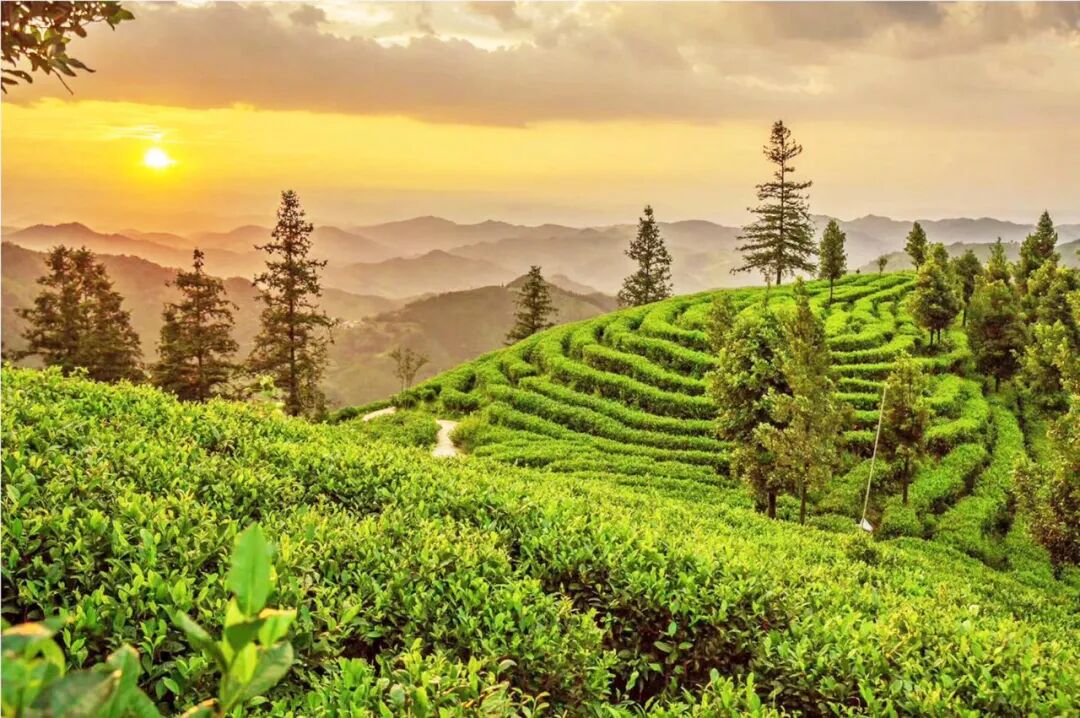 在革步湾享受垂钓之乐。 第二站 三冲缘高山茶园 ——拍出绝美日落 海拔1680米的三冲缘高山茶园,是观赏隆林日落的绝佳去处。夕阳西下时,金色霞光铺满茶山,构成一幅绝美的天然画卷。在茶园你不仅可以采茶制茶,还能拍出电影感十足的旅行大片。