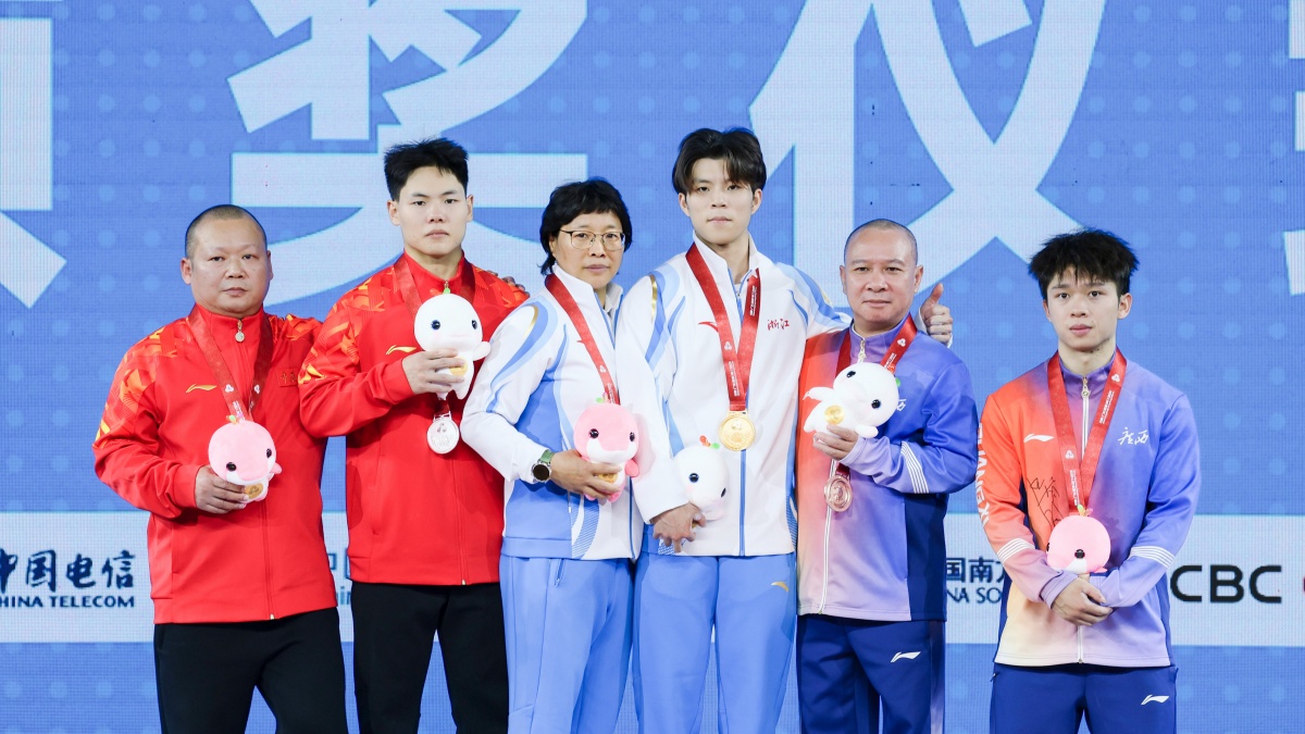 钟远龙(右一)摘铜。广西举重运动发展中心供图 钟远龙于2001年出生于贺州市钟山县,自2010年开启举重生涯。此前,他曾获得2024年全国举重锦标赛男子67公斤级总成绩冠军。此次比赛,面对东京奥运会冠军谌利军等一众举重顶尖好手,首次参加全运会的钟远龙顶住压力,表现稳健,展现出过硬的比赛心态与竞技水平。