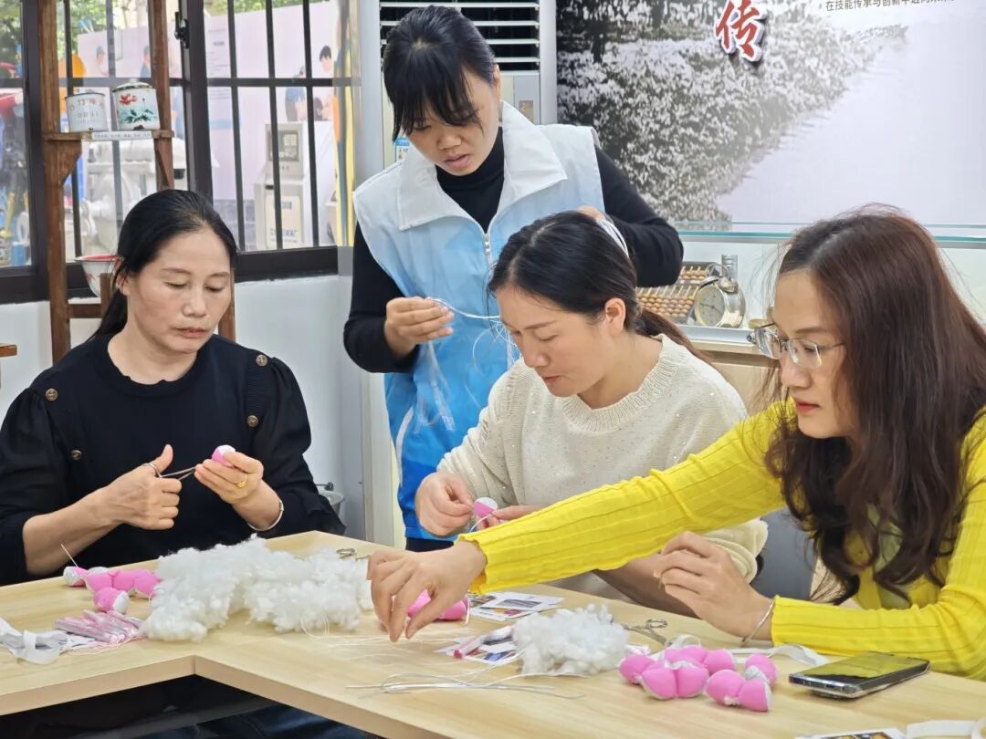 育技能:“壮乡巧娘”非遗工作室 就业技能培训:聚焦民族特色与就业,将壮锦刺绣、非遗手作转化为实用技能。通过免费培训、订单帮扶、销路对接,让乡村妇女等掌握 “指尖功夫”,既传文化,又能接单增收,实现 “技能在手,致富不愁”。 非遗技艺传承:“麽乜”(读音mō miē)起源于右江上游一带的桂西壮族地区,是壮族特有的民间吉祥饰物,制作群体以女性为主。如今,这门古老技艺正焕发新活力——麽乜成了承载祝福的平安符,传统元素还融入时尚设计,不仅以匠心守护了壮乡文化根脉,更成为助力乡村振兴的新动能。