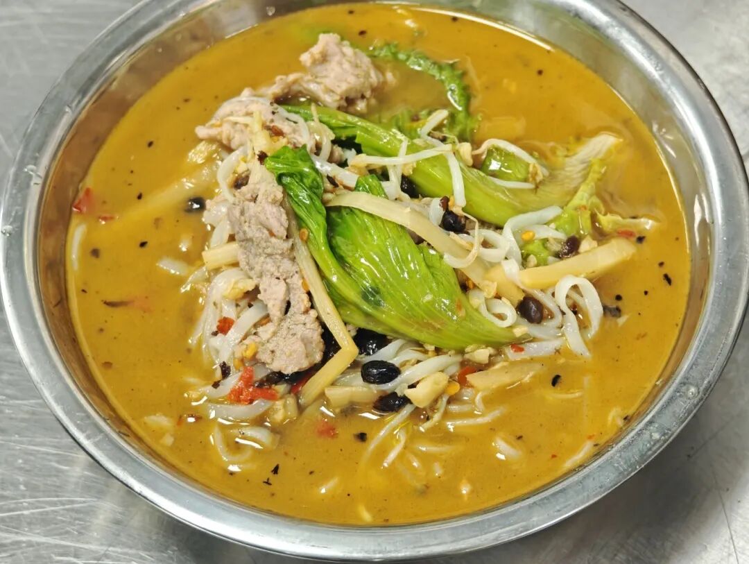 图为现场培训制作老友粉,酸辣鲜香全在这一碗南宁人的粉里。 大师传“老友”,育徒促增收 刘勇是 “南宁老友粉” 传承人、自治区 “八桂米粉师傅” 专家工作室成员。他参与制定米粉标准化流程,创新菜品获全国金奖,推动 “八桂米粉” 入非遗,累计培训 600 余人,助学员月均增收超 4000 元。 学艺创品牌,桂味拓新篇 南宁人韦修武2023年在南宁市第一职业技术学校学老友粉制作,经大师指导精进工艺。2024年11月创立“邕大餇”,以“料底标准化+步骤手工化”保风味,借学校资源优化运营,还开发美食线路、建线上平台,让品牌成南宁特色打卡点。