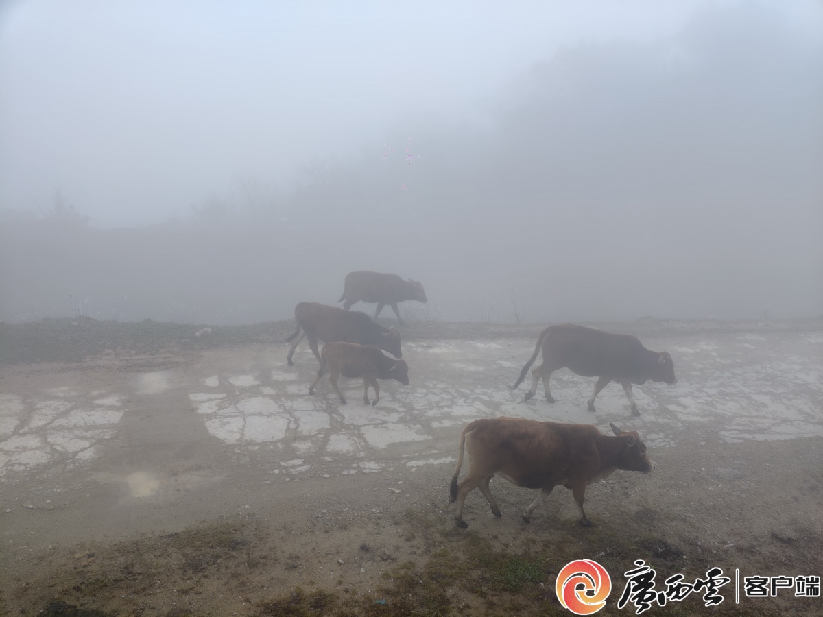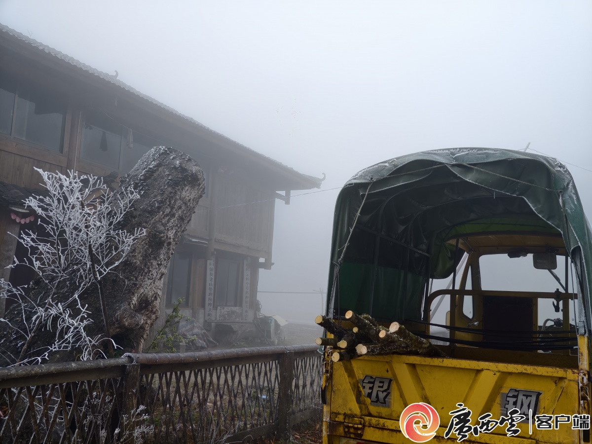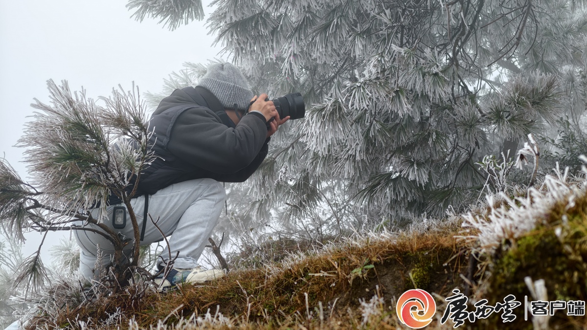 摩天岭上出现雾凇现象,草甸被冰雪覆盖。梁强 摄 摩天岭位于广西柳州市融水苗族自治县西北部杆洞乡尧告村,是九万大山山脉的主峰,海拔1938米。该山脉由上元古代雪峰期花岗岩构成断块山地貌,表层分布着灌丛草甸土。 11月18日7时,摩天岭上温度已骤降至零下,出现雾凇现象,山顶植被和树木裹上银装。数位牧民从尧告村步行一小时登顶,召唤散养在山顶草甸的牛群聚拢回家。 今天(18日)7时,全区大部气温1字开头。其中桂北部分地区气温10℃以下。今天6时,中央气象台发布寒潮、大风双预警,广西广东等地部分地区降温幅度可达10℃。 11月18日早上,柳州市气象台发布最低气温、极大风统计及最新天气预报,11月17日7时至18日7时(24小时)受高空槽东移引导地面强冷空气南下影响,柳州市大部地区阴天有小雨,部分地区有6~7级、局地8级阵风。