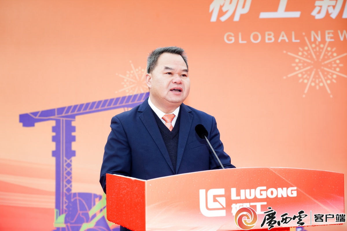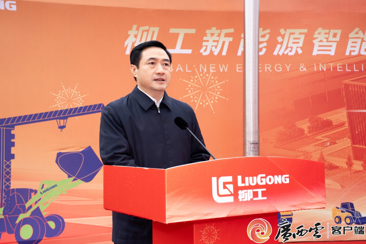 柳州市人民政府市长刘胜友发表致辞。唐绍怡 摄 中共柳州市委书记张壮、柳州市人民政府市长刘胜友、柳州市人大常委会主任宋震寰,和柳州市委统战部、市政协相关负责人,区工信厅相关负责人;中国工程机械工业协会专家委员会副主任李建友,中国工程机械工业协会副会长、挖掘机械分会会长,柳工老领导曾光安;国家工程机械质量检验检测中心主任刘中星、中机中联工程有限公司党委书记、董事长赵永勃等领导出席仪式。