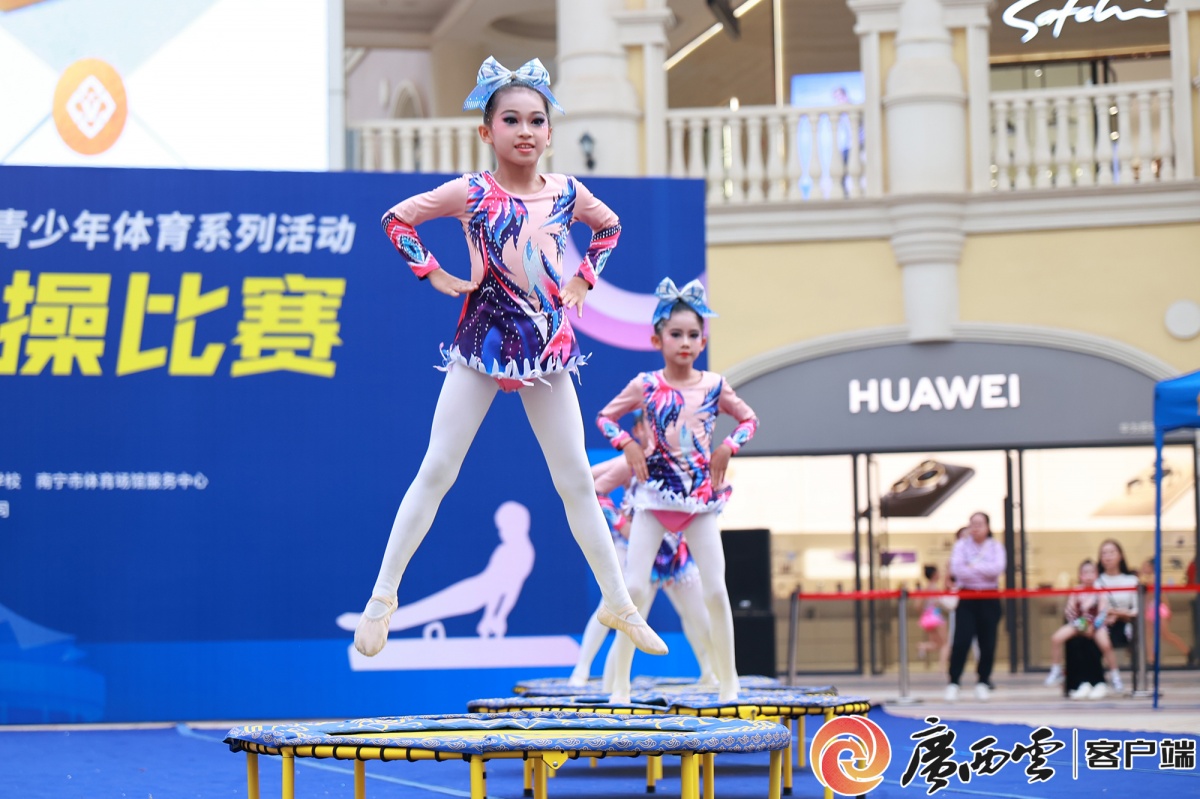 比赛现场。主办方供图 赛事由南宁市体育局、南宁市教育局、南宁市体育总会联合主办,设体操、艺术体操、大众蹦床、技巧四大竞赛单元。在15日、16日为期两天的竞赛中,来自南宁各学校、俱乐部的87支队伍、近900名小选手,根据年龄分组角逐自由体操、体操个人竞速、技巧大集体、艺术体操圈等多个项目。