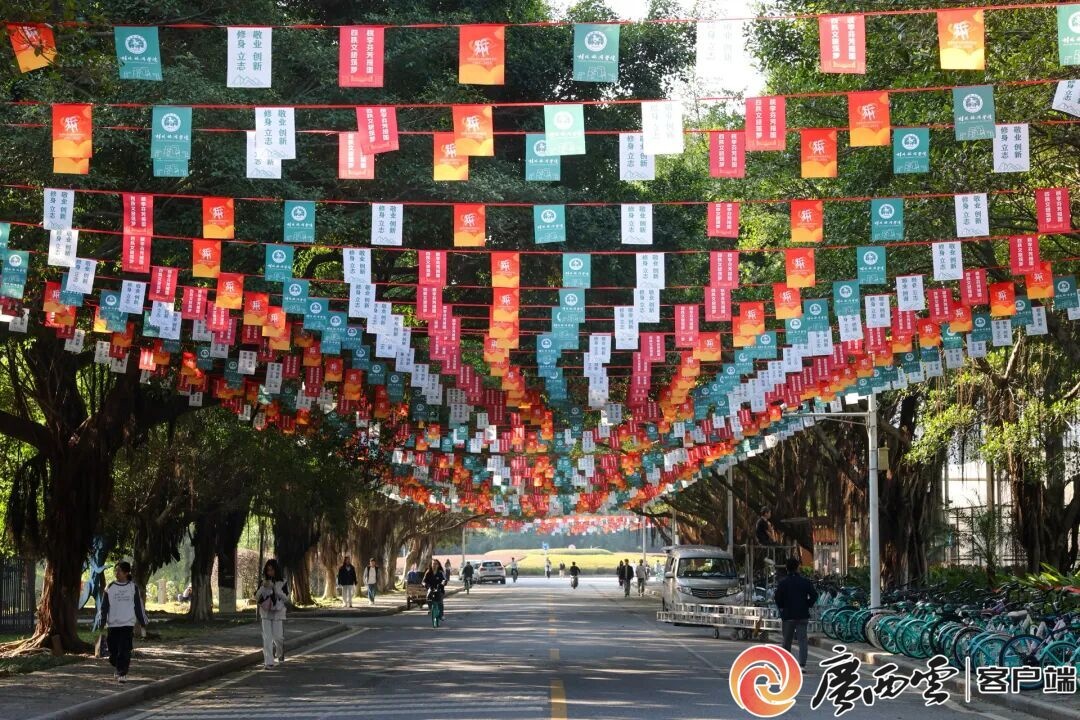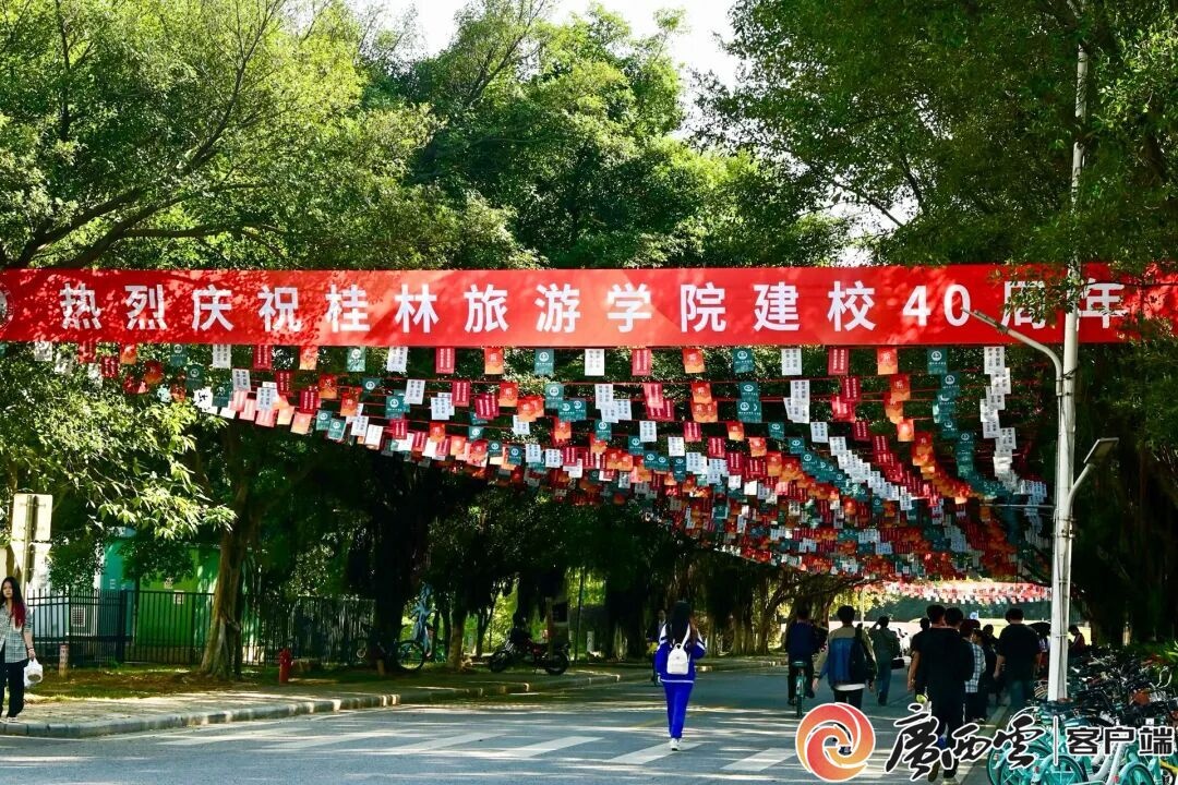 桂林旅游学院四十周年校庆之日的校园一角。 桂林旅游学院党委副书记、校长林春逸在致辞中提到,学校在旅游强国建设新征程上,将落实立德树人根本任务,以学生为中心,对接国家战略需求,利用人工智能推动育人方式变革,弘扬教育家精神,深化旅游教育对外开放,为建设教育强国、旅游强国、文化强国,推进中国式现代化作出新贡献。